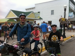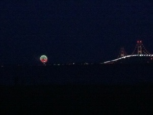 After taking a fast catamaran to the island, we rented bikes, circumnavigated the island, visited the Fort Museum, watched a 38-gun salute (in honor of the 38 states in the Union in the 1880s), rode in a horse-drawn carriage, explored the stores and fancy hotels (Ben even found his namesake establishment), and – of course – ate fudge. Back at the campsite tonight we watched multiple sets of fireworks across Lake Huron. What a glorious day!