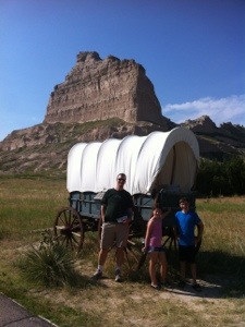 We crossed the Oregon Trail at Scotts Bluff NE. This impressive stone outcrop was an important milestone for the westward travelers. Our journey was nowhere near as harrowing as that of the emigrants in the wagon trains, but the combination of strong winds across the plains and undulating hills certainly taxed Chester and the drivers.