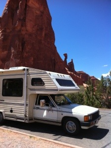 After saying goodbye to Joyce and Stu on July 15, we embarked on a relatively short drive to Arches National Park. Fortunately we were gassed up and refreshed because most of the exits in eastern Utah say “no services” and some of the rest areas don’t even have bathrooms!