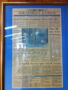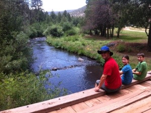 July 21 – The main item on today’s agenda was a visit to Hummingbird Music Camp in Jemez Springs NM. Susannah had spent 10 blissful summers there growing up but hadn’t been back for 20 years. The people running the camp still remembered her – perhaps in part because her picture from the front page of the Albuquerque Journal taken 26 years ago still hangs framed on the wall in the dining hall.