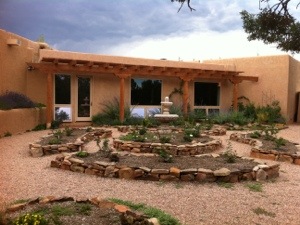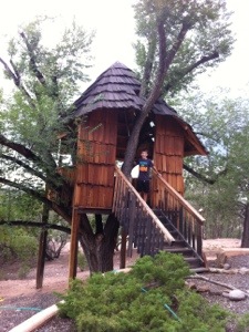 Leaving Hummingbird just before the skies opened up, we passed through Los Alamos en route to Santa Fe, arriving at the home of Nick’s relatives Ken and Maxine. They have a beautiful setting in the hills above Santa Fe, complete with outside fireplaces, a stone garden, and even a treehouse. A delicious dinner ensued.