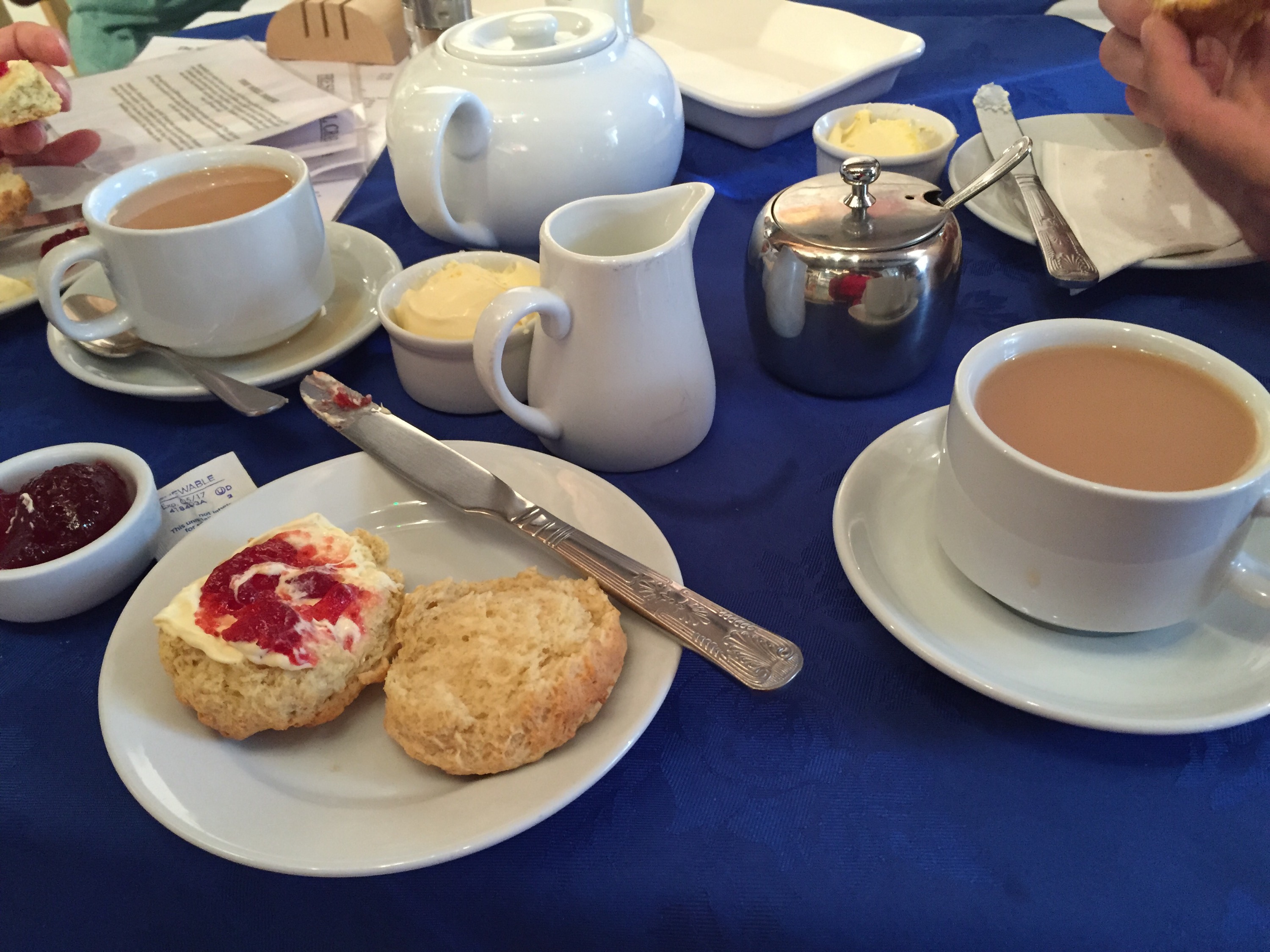 Bidding farewell to L&R (who were heading home via Exeter), the remaining party took to the water, hiring a motor launch to take a turn about the harbor. We topped off the boat trip with a traditional Cornish cream tea at the Well House (built 1430) and had to admit our efforts were amateur when we only managed to consume a mere third of the clotted cream served to us.