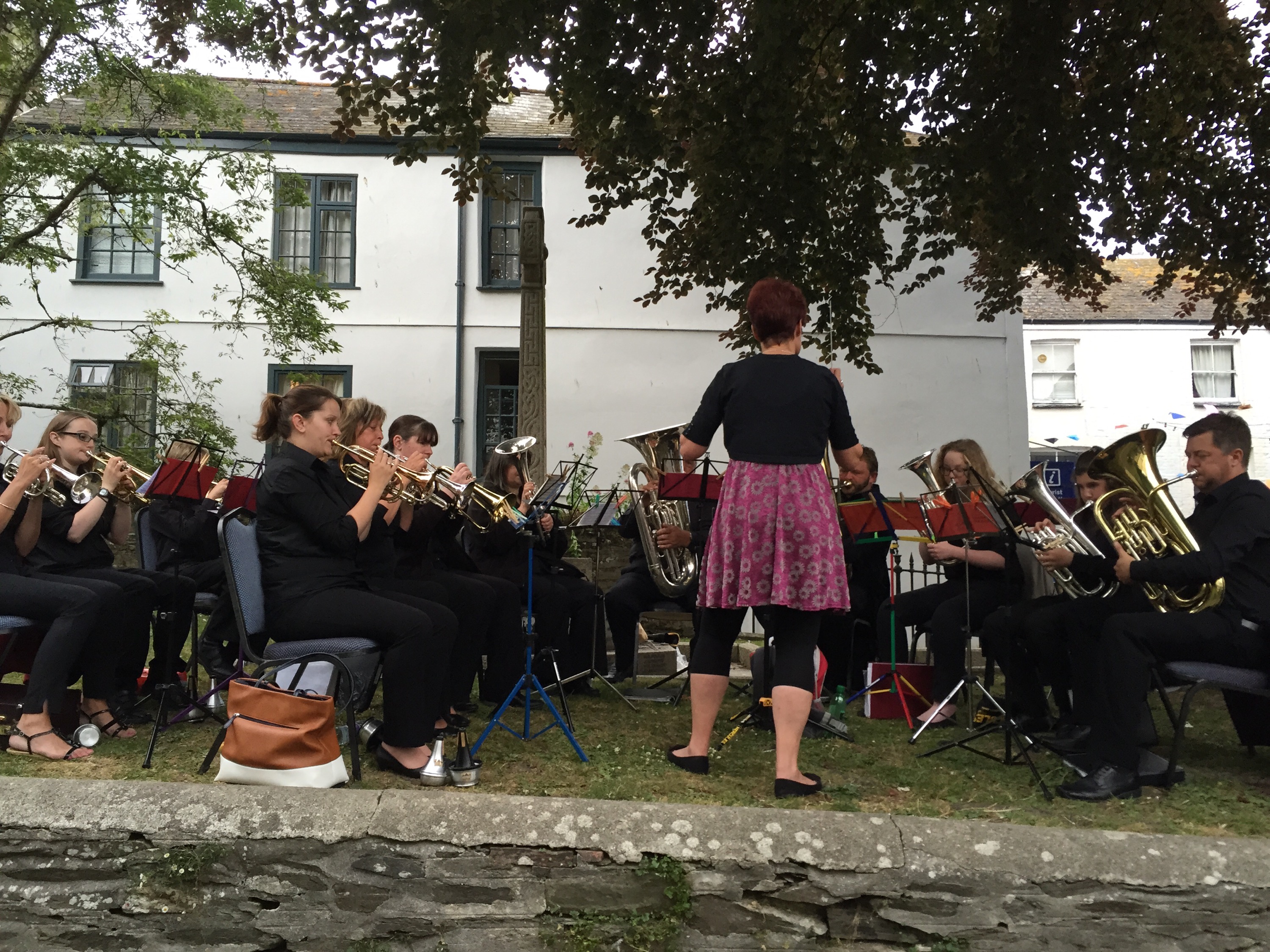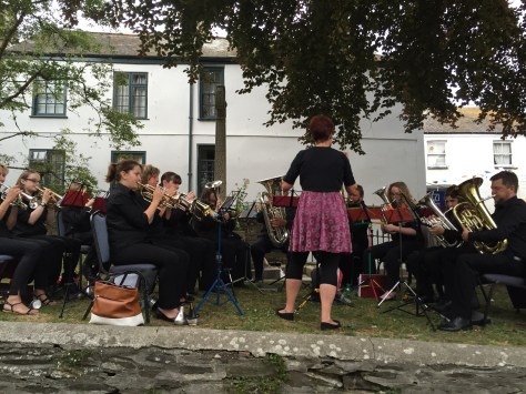 We dined in style at The Ship Inn (relatively new construction, being built in 1570) – if you ever have a chance to try their Famous Fowey Fish pie, come hungry! Much to our delight, we were serenaded by the St Pinnock brass band, who were playing a pop-up concert in the churchyard right outside the window.