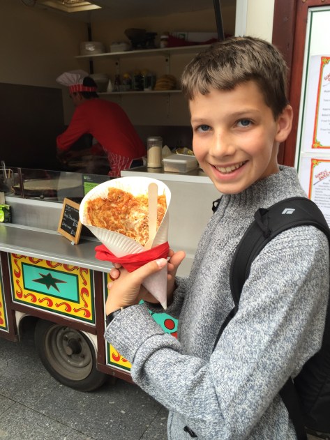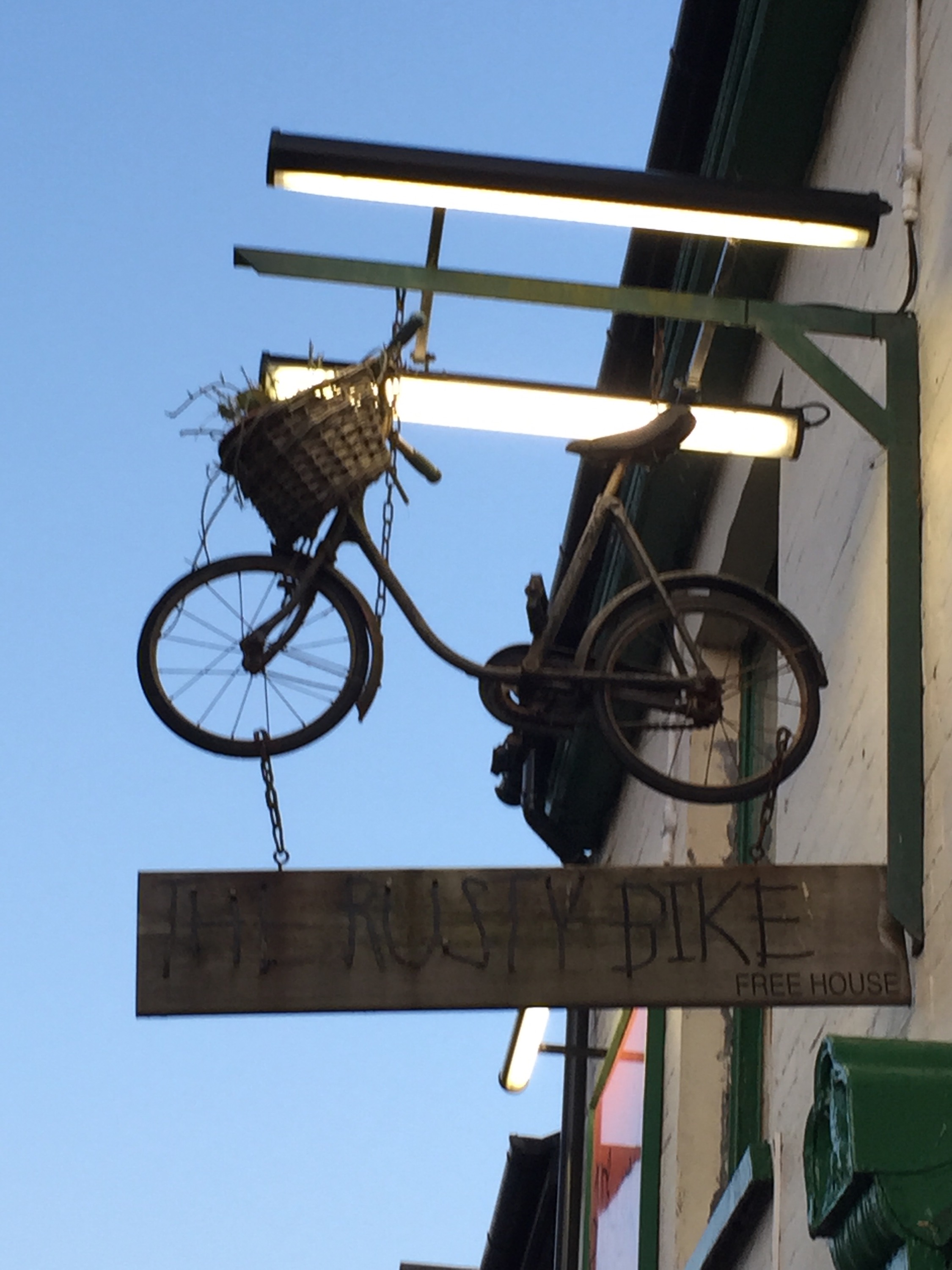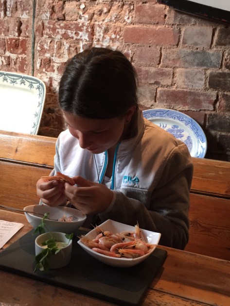 Our final stop was a highly-recommended pub called the Rusty Bike, right around the corner from our B&B. The food was delicious; Rowan was a champion eater of shell-on prawns, but Nick was the only one to enjoy the “scrumpy” cider (a local specialty with an unusual nose).