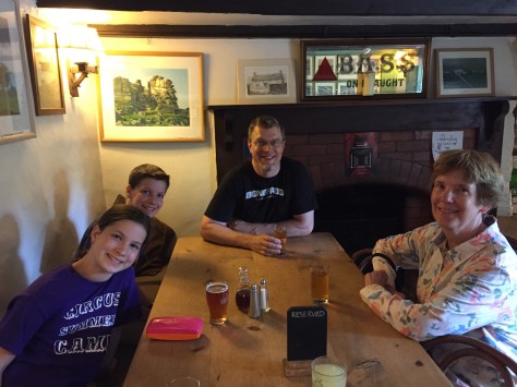 We capped off our day and our trip with another festival – this one located in the village of Denbury and called “Glas-Denbury” after the larger and more famous music shindig in Glastonbury. The festival featured a nice slice of vintage and local charm, including an imaginarium, flea circus, mechanical bull, and flame jugglers. It also had mouthwatering food, stalls with crafts, and four music tents going at once. Alex and his kids were wonderful hosts to our whole family. A fitting ending to our memorable fortnight in England!