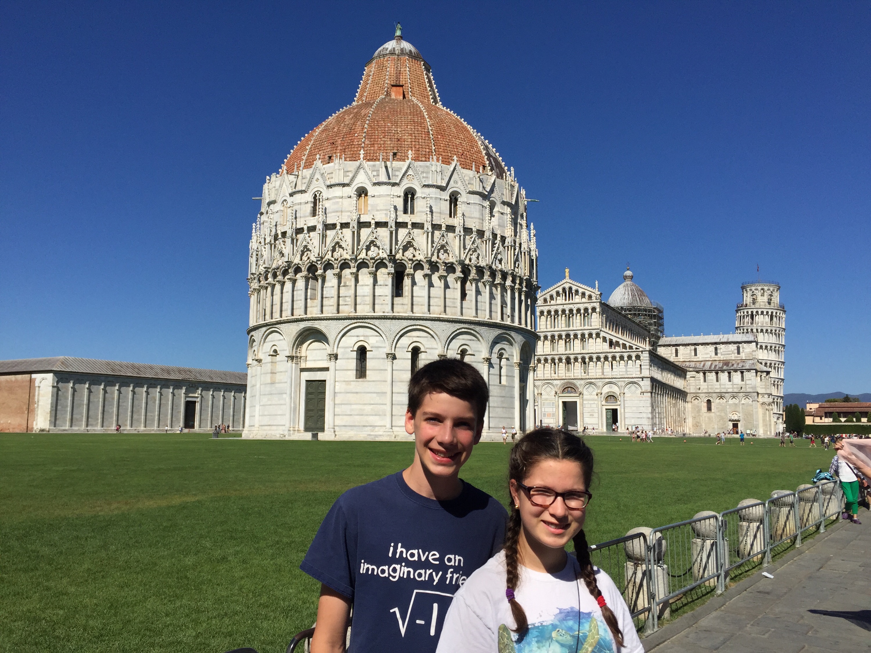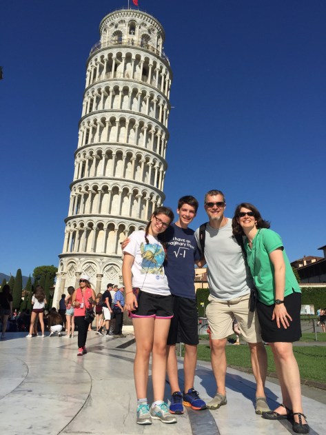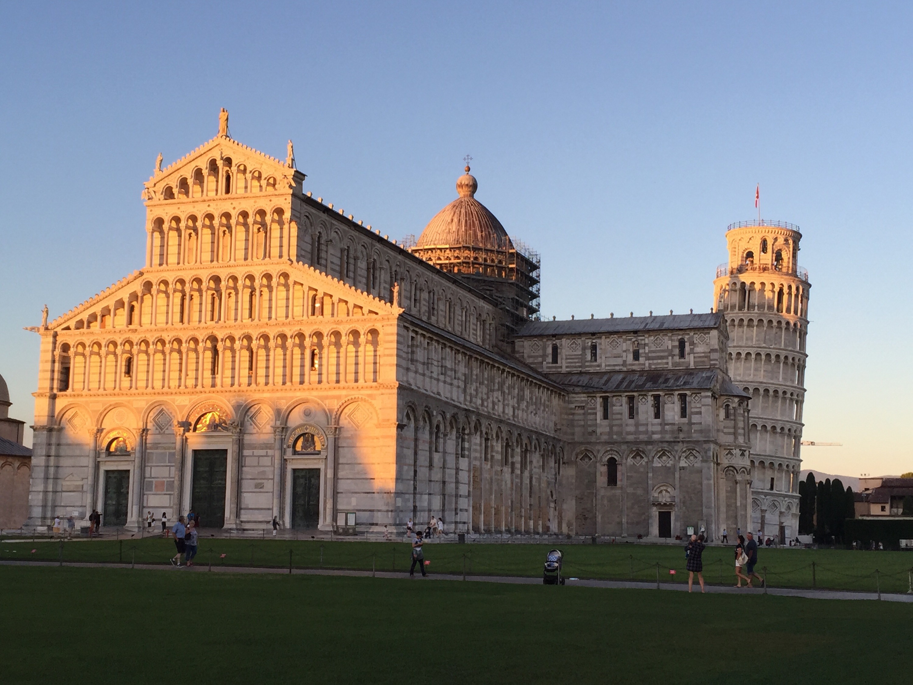 We caught the tower complex again on the way home, this time glowing from the light of the setting sun.  Today was a perfect amount of Pisa – we look forward to a good night sleep and continuing our adventure in smaller towns tomorrow.