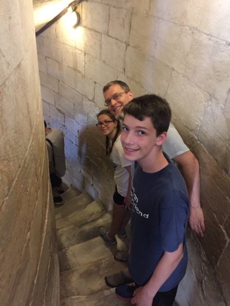 The late afternoon was dedicated to exploring the site in question.  After the obligatory adjusting of the tower’s angle, we explored around and up.  The views from the top are striking in all directions, but the leaning feeling one experiences especially on the stairs going up/down is definitely disorienting.