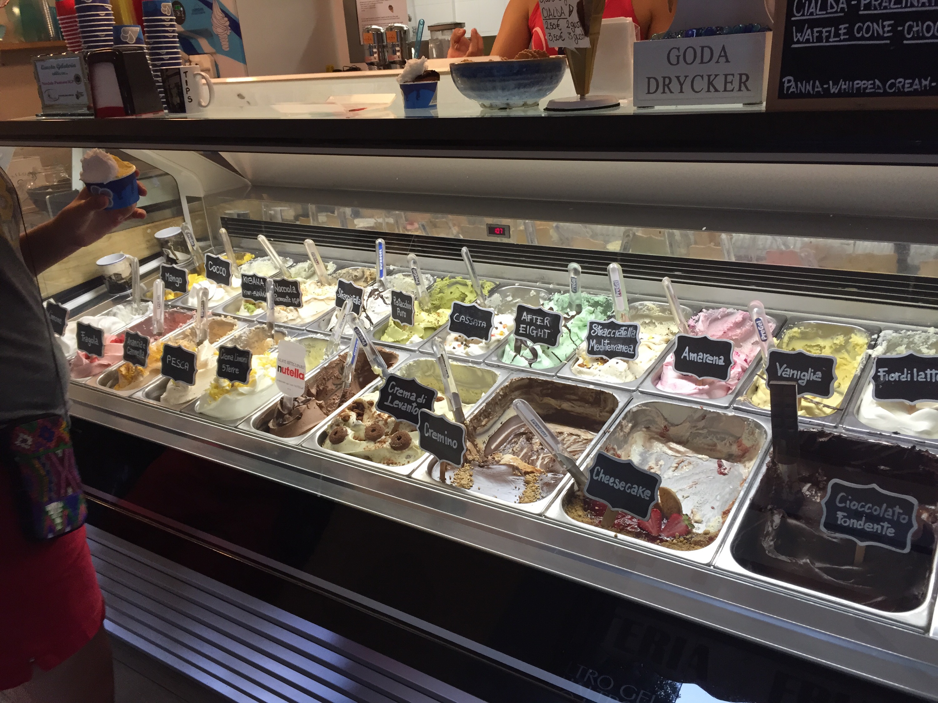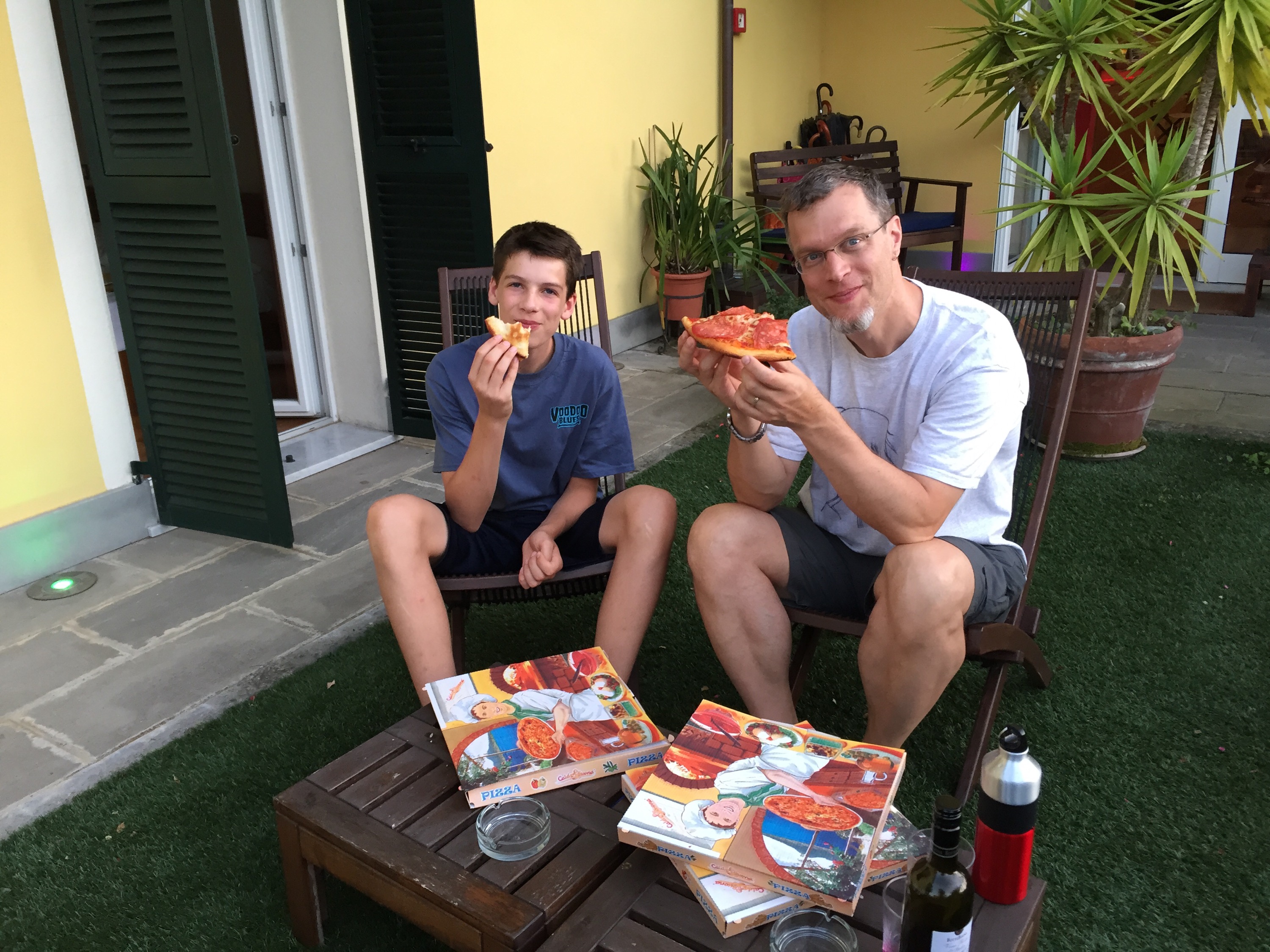 Dinner was pizza (of course), preceded (again!?) by gelato and sorbetto. We seem to have a thing about eating dessert first here in Italy, and for eating outside.