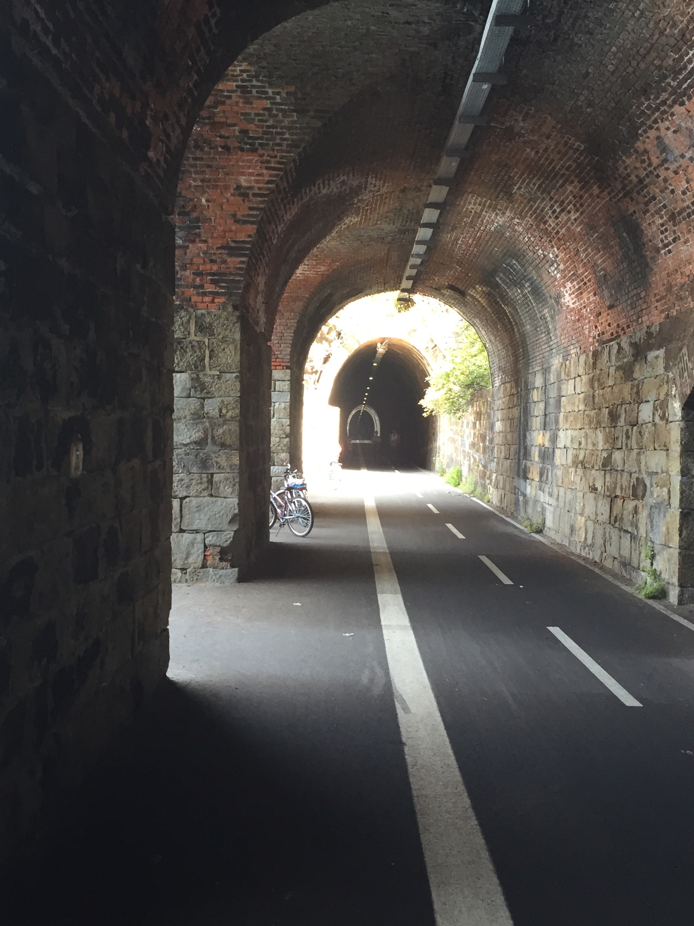 What a treat! The route passes mostly through tunnels, punctuated by brilliant views of the sea through arches and brick arcades. As a bonus, the temperature underground is cool and pleasant. We liked it so much, we biked the roundtrip twice!
