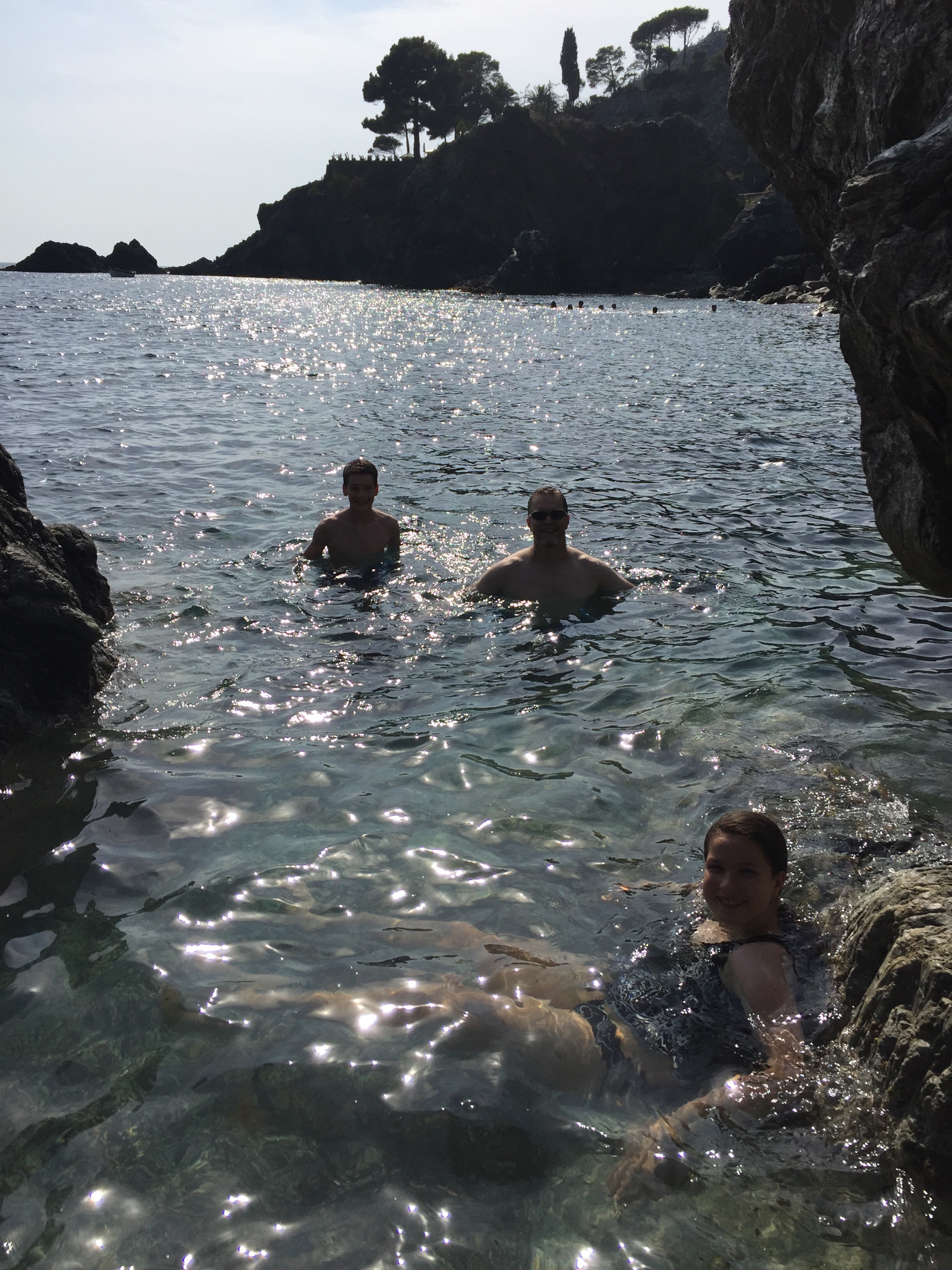 After spending the mid-afternoon relaxing back at the hotel, we ventured out once more in search of a small bathing cove we had noted on our morning ride. The water was cool and refreshing, the locals were jumping off of rocks, and the cove held a special treat – a sea cave with a narrow channel you could just swim through (not pictured for fear of drowning the camera).