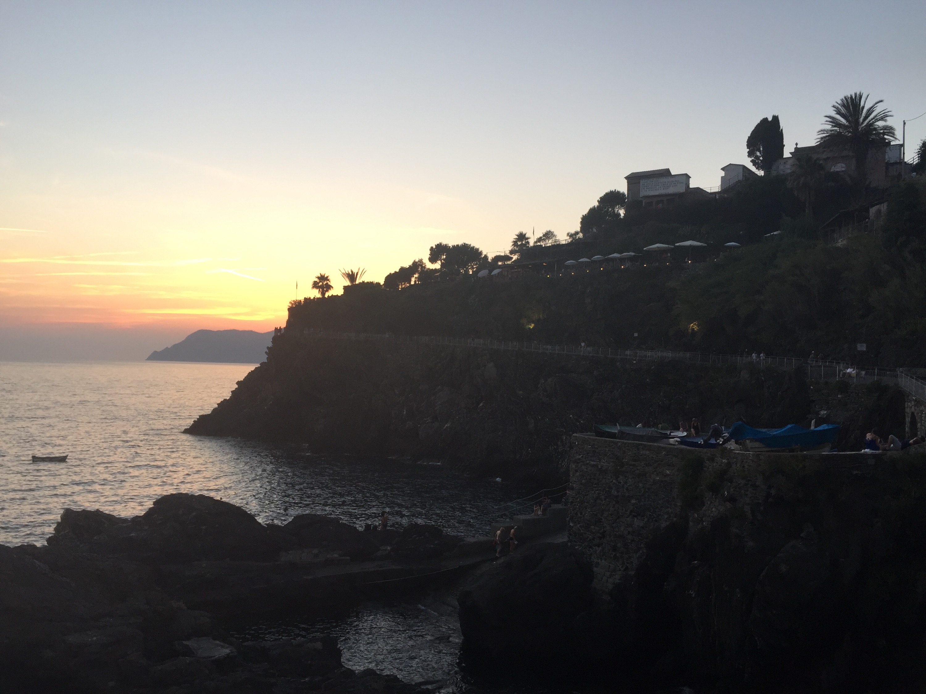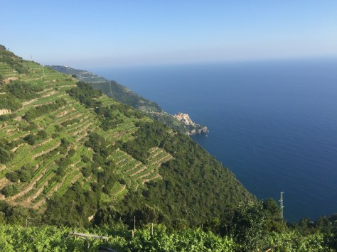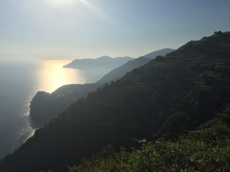 The last part of this trail coming into Manarola was our favorite of the day with the sun shining low over the Mediterranean and the trail making its way down a ridgeline overlooking the sea. Above we had passed through terraced vineyards as far as the eye could sea. The work needed to make and maintain this terracing is truly impressive – hard to believe wine can actually be affordable.
