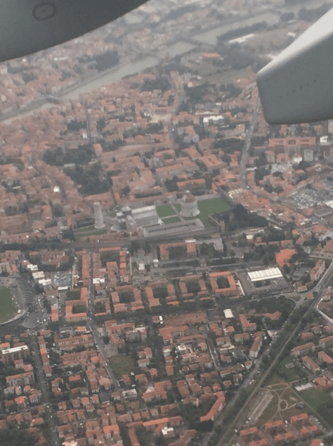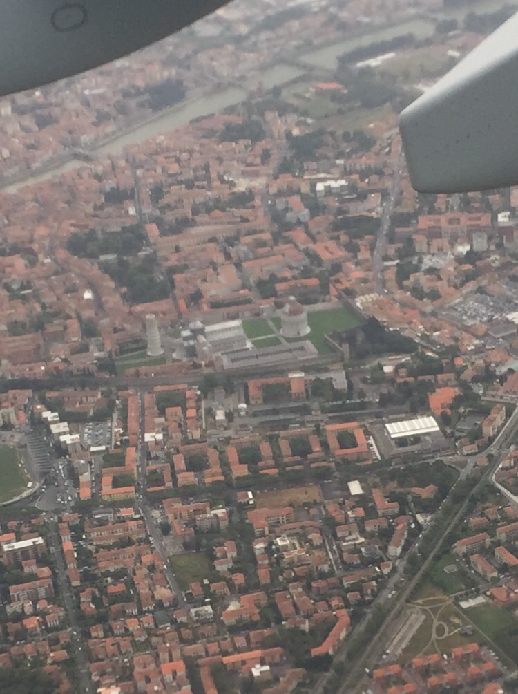 Sadly, the rest of the day was dedicated to travel – train, bus, bus, plane, bus, plane, bus, car to be exact – but that gave us lots of time to think about our many memories from this Italian adventure. We even caught one last glimpse of the leaning tower in Pisa from the air.