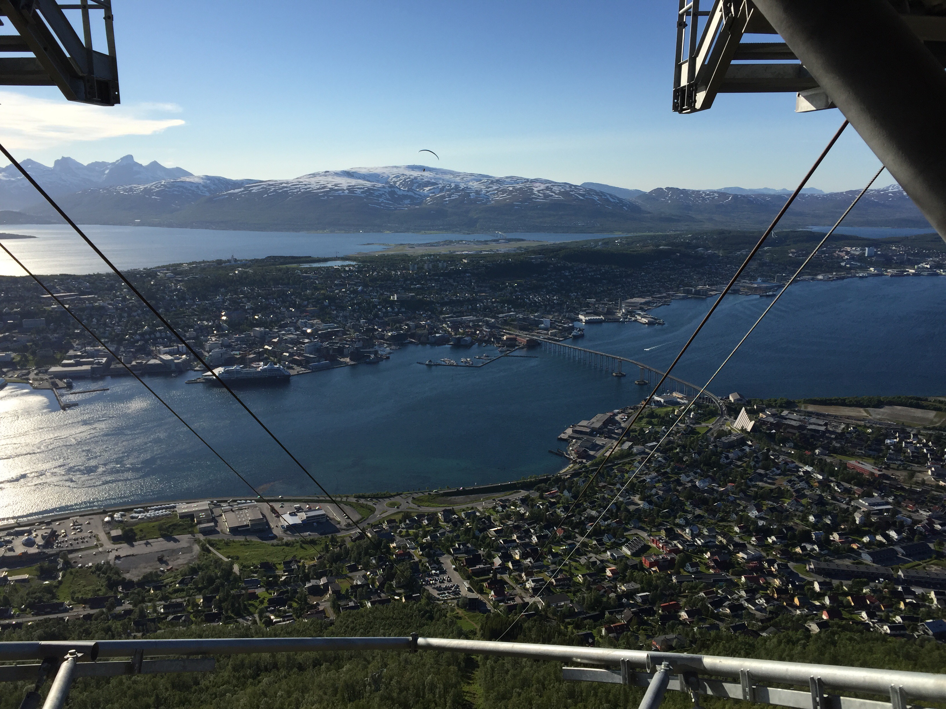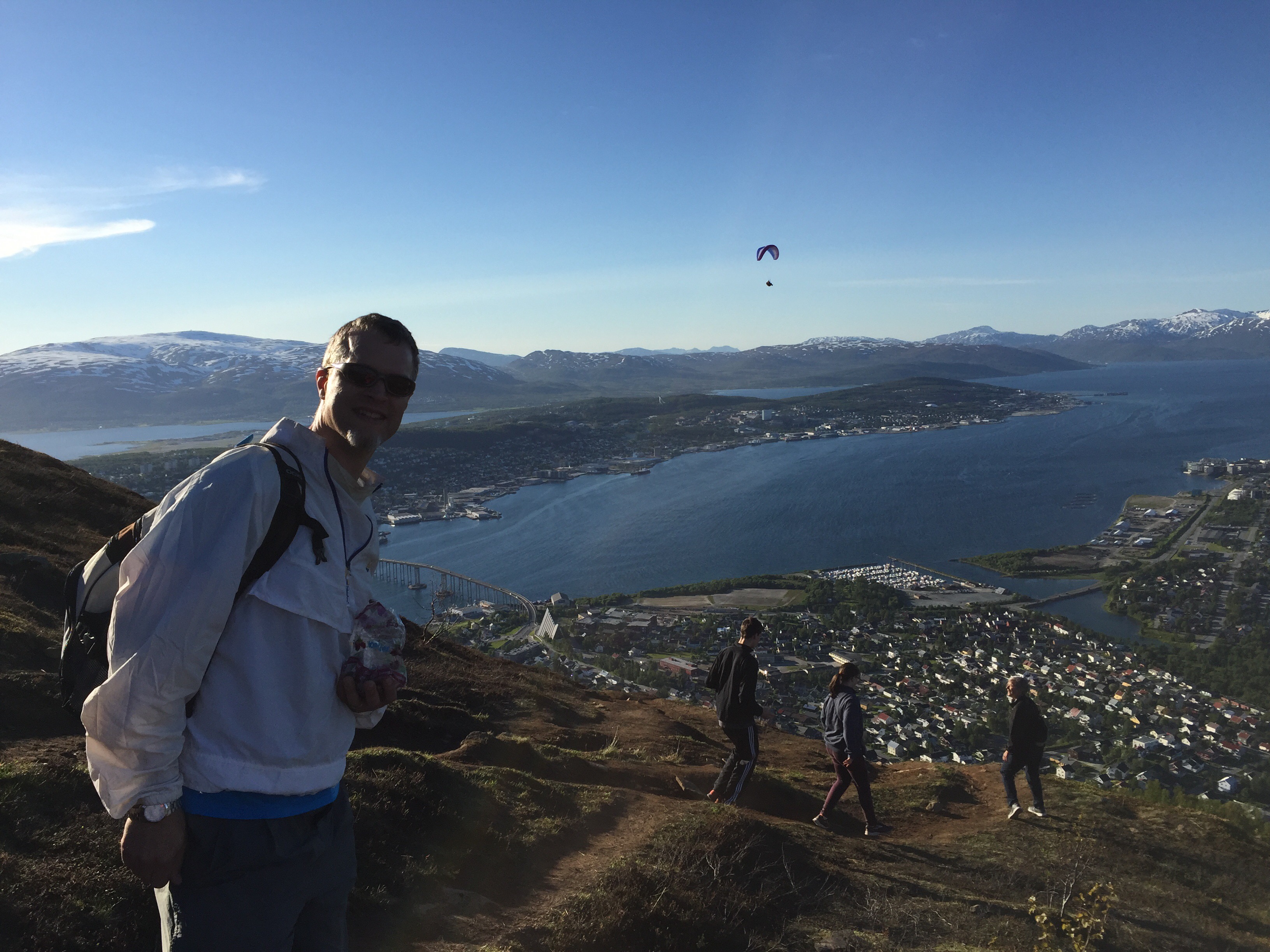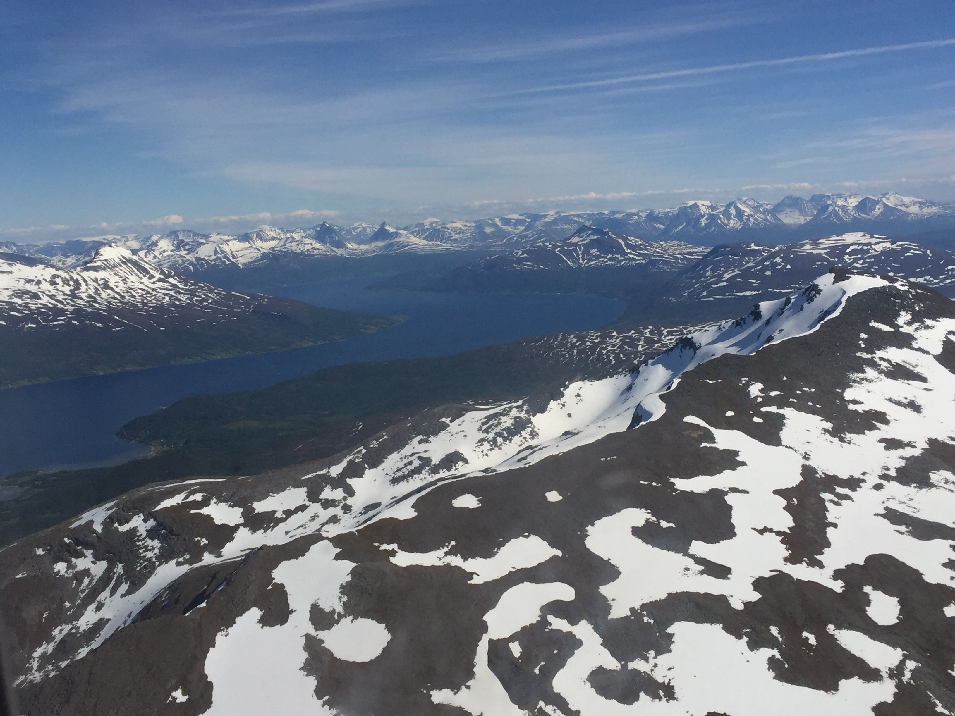We then caught a plane to the northern city of Tromso, above the Arctic Circle. Although it is summer, snow still grips many of the mountain peaks, as we could see from the plane.