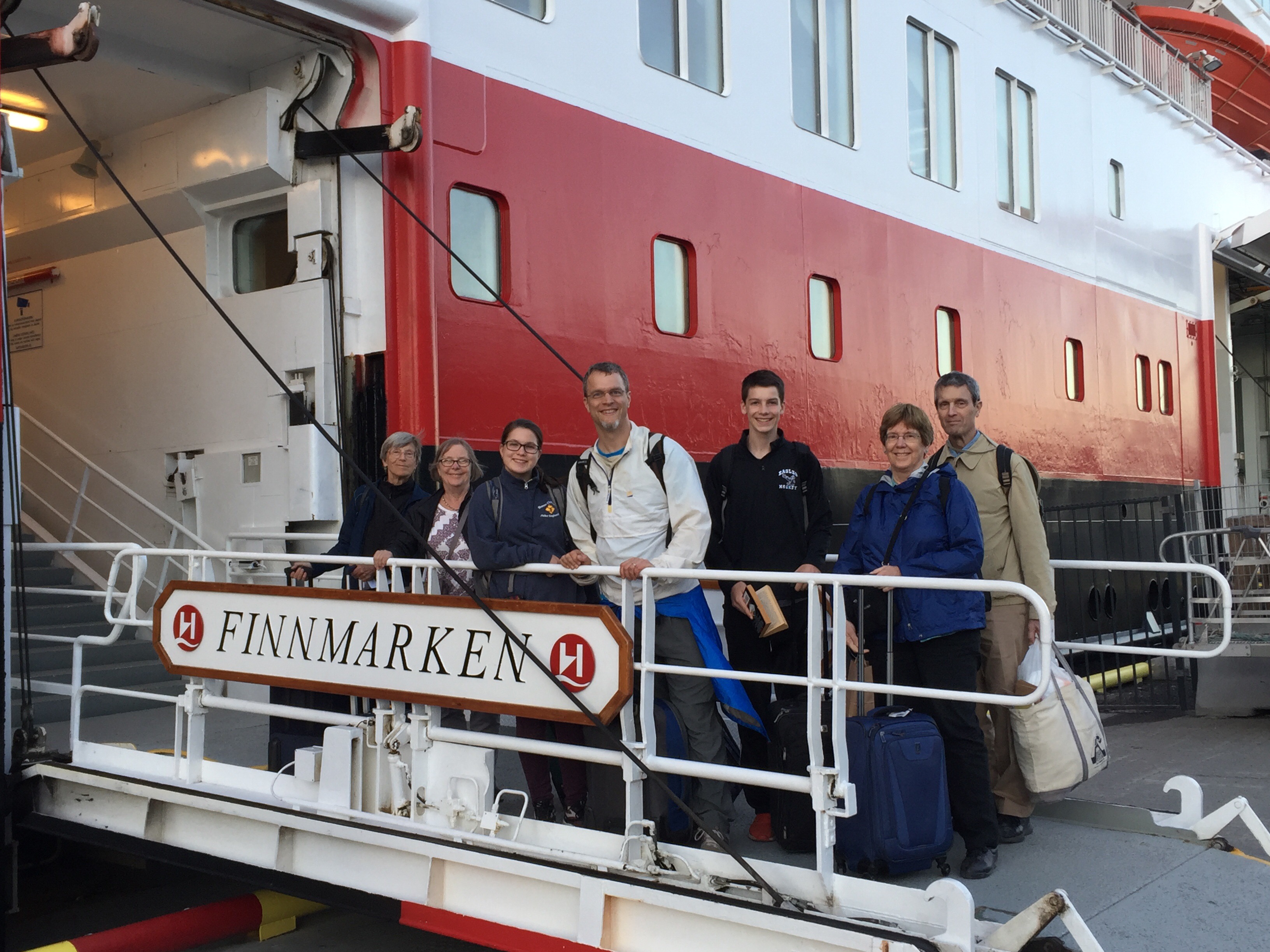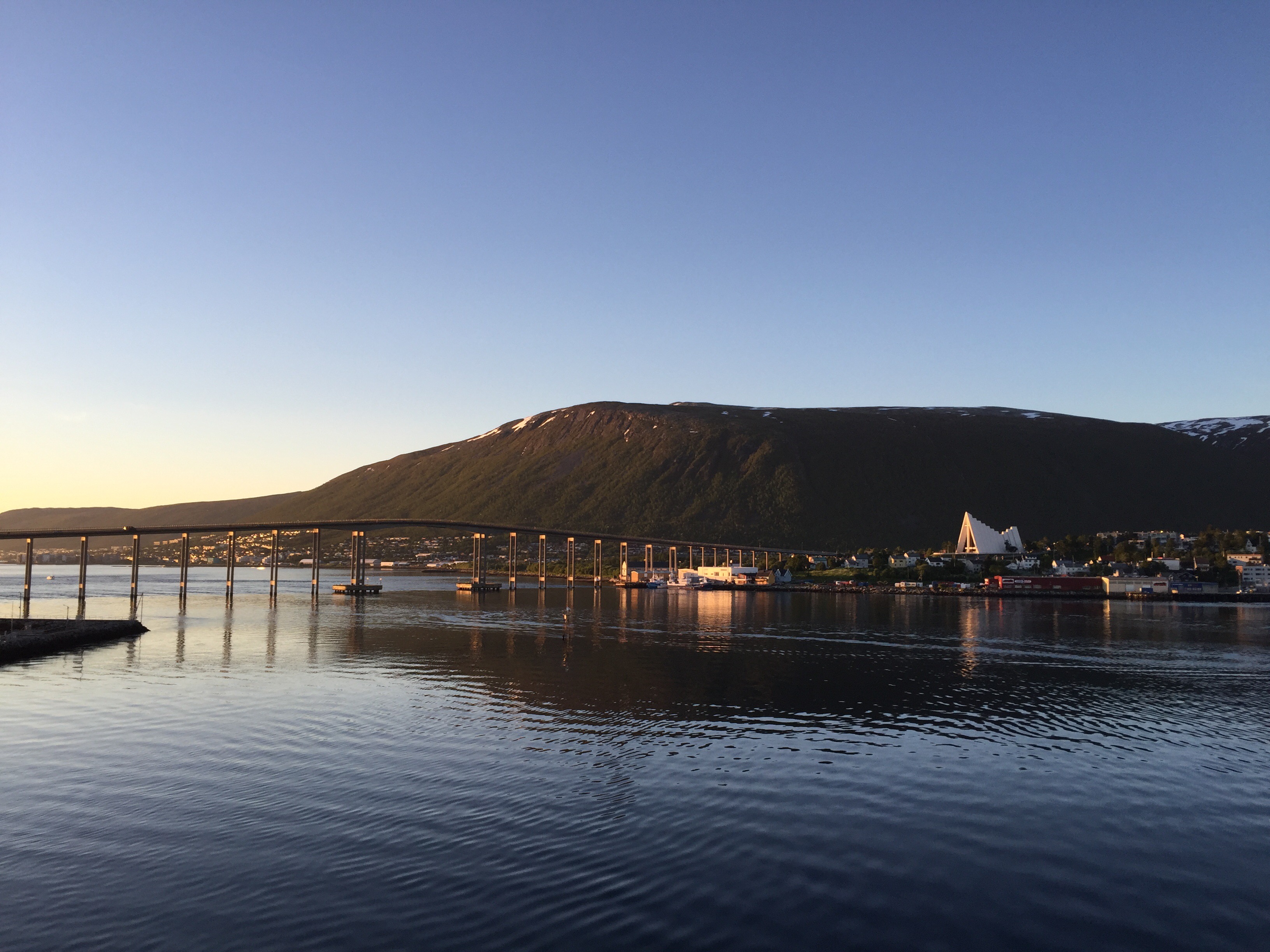 At midnight (though it felt like late afternoon!) we boarded the Hurtigruten mail ferry for our 4 day trip south to Bergen. The sun’s lowest point was still well above the horizon and its golden rays saw us off as we departed Tromso’s harbor.