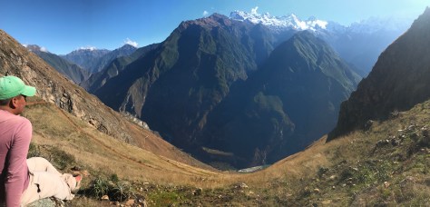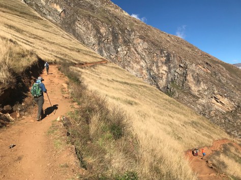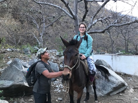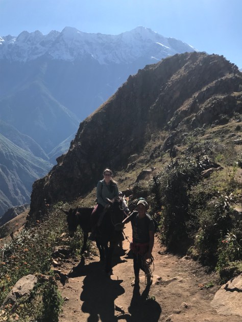 Speaking of the horse handlers, Rossel and Chino (also helped by his son Edwin) took care of not only the horses but myriad other tasks in setting up and breaking down camp. They became particularly important on the last day when Rowan needed to ride one of the horses in lieu of hiking due to her increasingly painful blisters. She was delighted, since she had been hoping for a horse ride anyway, and travelled out of the canyon as part of a train with several other visitors from another party. The other three of us hiked out with Fermin, taking our last views and saying goodbye to the beautiful Apurimac valley.