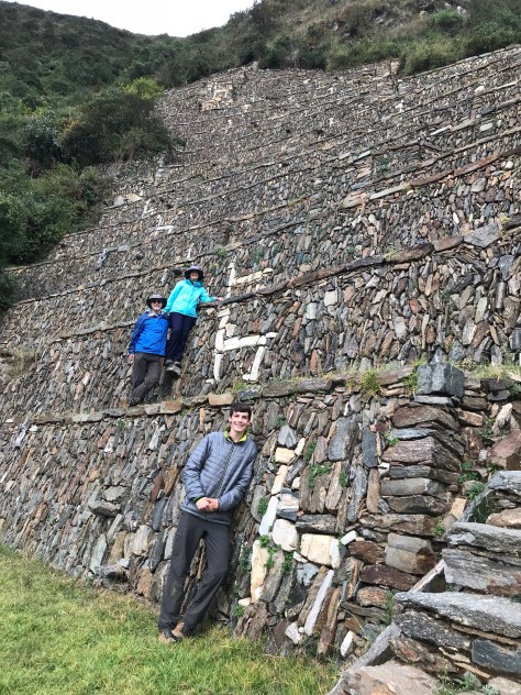 Other parts of the site include a temple with ritual baths, granaries and food storage rooms, a viewing chamber for sacred mummies, and a large guest house for travelers coming and going on the Inca road system. Both flanks of the steep mountain saddle are extensively terraced; some were used for agriculture but others leave us still guessing as to their exact purpose. Of the latter, the Llama Terraces are the most impressive. Although they are situated at quite a hike down from the main plaza (Susannah counted over 500 stone steps) they seem to hang suspended off the mountain, and one feels that a single leap could reach the foaming river far below. Their name comes from the white llama images embedded in the stonework.