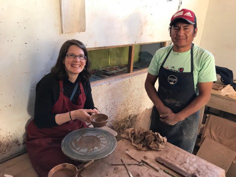 Next, we visited a ceramics workshop where we tried several stages in the pottery-making process, including grinding stones to make clay, throwing pots on a kick-wheel, and hand painting hardened clay pieces. We weren’t able to take the wet terra cotta pots home with us, of course, but we hope that our painted coasters will survive the journey.