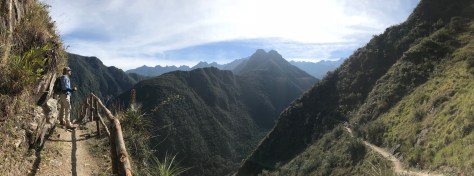 From river’s edge, the trail climbed slowly upward until it opened up to offer panoramic views up and down the valley. Ironically, the views were possible mainly due to a fire set by local farmers which burned down the jungle foliage and actually led to the discovery of the previously unknown Inca highway.