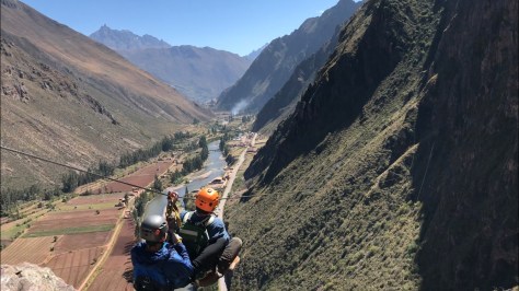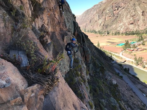 Not far from Ollantaytambo, Natura Vive offers such death-defying experiences to those with a hankering for them. After signing your life away, you can take a round trip tour 400 meters both up and back down the local cliff face. Of course, the down is much faster than the up – we travelled by zip line in six installments, racing with the cars on the road below. Most of the traverses were solo but the longest one (700 m) was done in tandem to ensure enough momentum to reach the far platform. The views along the Urubamba river valley were striking from all directions.