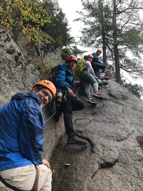 The upward climb took about 3 hours. Each person has two lines attached to their harness so that they’re always connected even when shifting anchor points; all that clipping and unclipping of the carabiners takes a long time!
