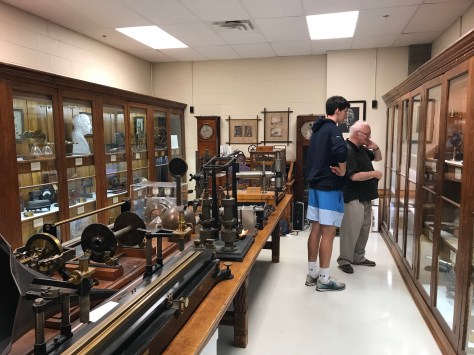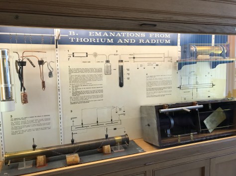 Ben and Susannah left the campus tour a bit early because we had scheduled a visit to the McPherson Collection and Rutherford Museum, housed in the Physics building. This turned out to be an hour-long personalized tour given by a tremendously knowledgeable and generous professor, who explained several of Rutherford’s key experiments, provided insights into Rutherford’s life, and showcased a number of old scientific instruments.