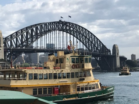Sydney has a wonderful incentive to get people outside on Sundays – through the Opal system, public transportation fees are capped at just under $2 US for the day. Once you’ve got that limit, you can ride as much as you want for free. So after a surprisingly delicious breakfast at a Yelp recommendation that turned out to be a food court restaurant, we capitalized on the transit discount by taking the ferry to one of its farthest destinations in Sydney Harbor – the community of Manly.
