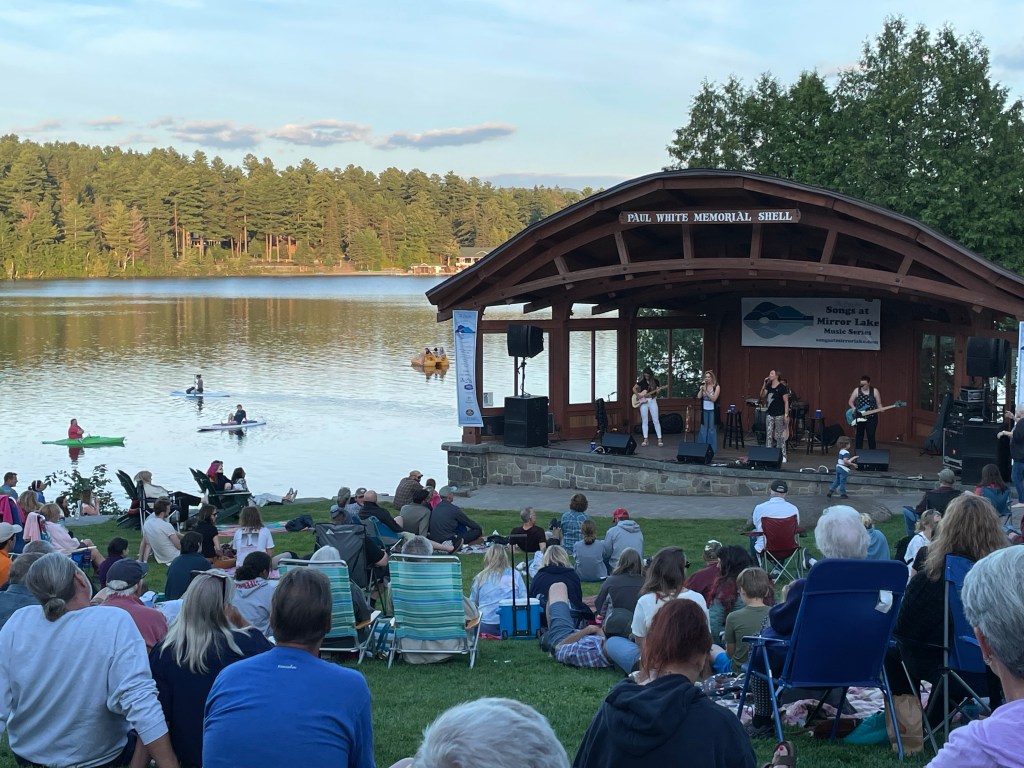 On the way home from the hike, half our group stopped for ice cream at Donnelly’s (thanks for the tip, Andy!) and the other half picked up wine and beer, which, combined with our takeout Thai food, made for a well-rounded meal. In the evening, a few of us headed into Lake Placid for a concert on Mirror Lake – fresh air and music to boot!