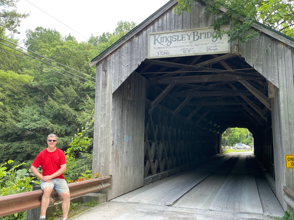 The day was mostly driving, but we did have a lunch stop at The Old Brick Store in Charlotte, a short jaunt around Middlebury College so Rowan could get a sense of the campus, and a small detour to a covered bridge.