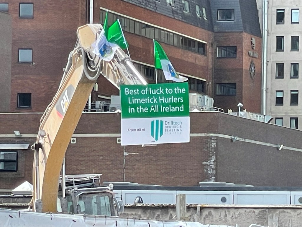 Update on hurling… The city erupted in celebration in the late afternoon with locals taking to the streets in force sporting the vibrant green of the Limerick champions (3rd year in a row). Turns out, hurling is a pretty exciting sport to watch. We caught the first half hour of the match on TV, and concluded that it’s a zany combo of lacrosse, football, baseball, tennis, and soccer. As the TV announcer said, “there is no game like it in the world!” You just have to catch a game sometime for yourself. 🙂