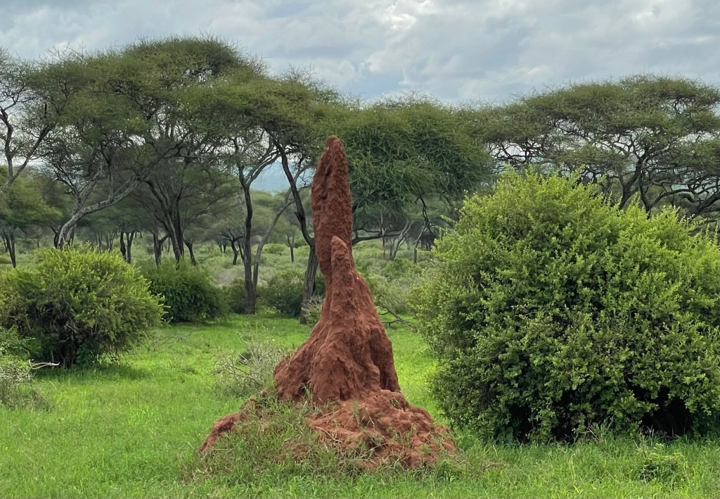 Our primary destination today was a vast lowland swamp (10 square km) some distance from our camp. It took quite a bit of driving to get there, and we thought we would share some of the striking scenic features along the way. The acacia trees dominate the landscape, and the rich red termite mounds also catch the eye. Many of the animals from yesterday made repeat appearances but we also met some new characters including the waterbuck antelope (and the dikdik, its smaller and not-pictured cousin).