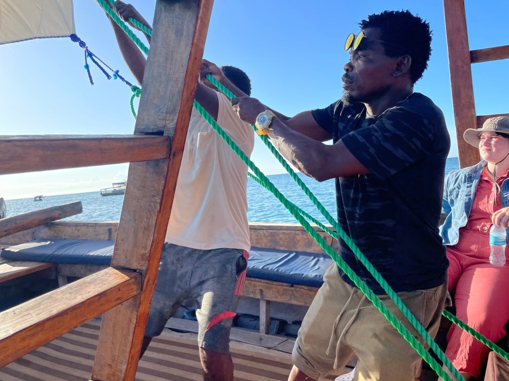 By the time all the travel was done, we didn’t have much daylight left. We made the most of it by takng to the water on a dhow-style sailboat for a sunset cruise. Our captain James, though now catering to tourists, had grown up as a fisherman and told us a little about that way of life. The fishing grounds are far away from land, so the men spend the night on the ocean before returning the next morning with their catch. Apparently the hotels that cater to tourists now buy up so much of the local fish that very little remains for the locals.