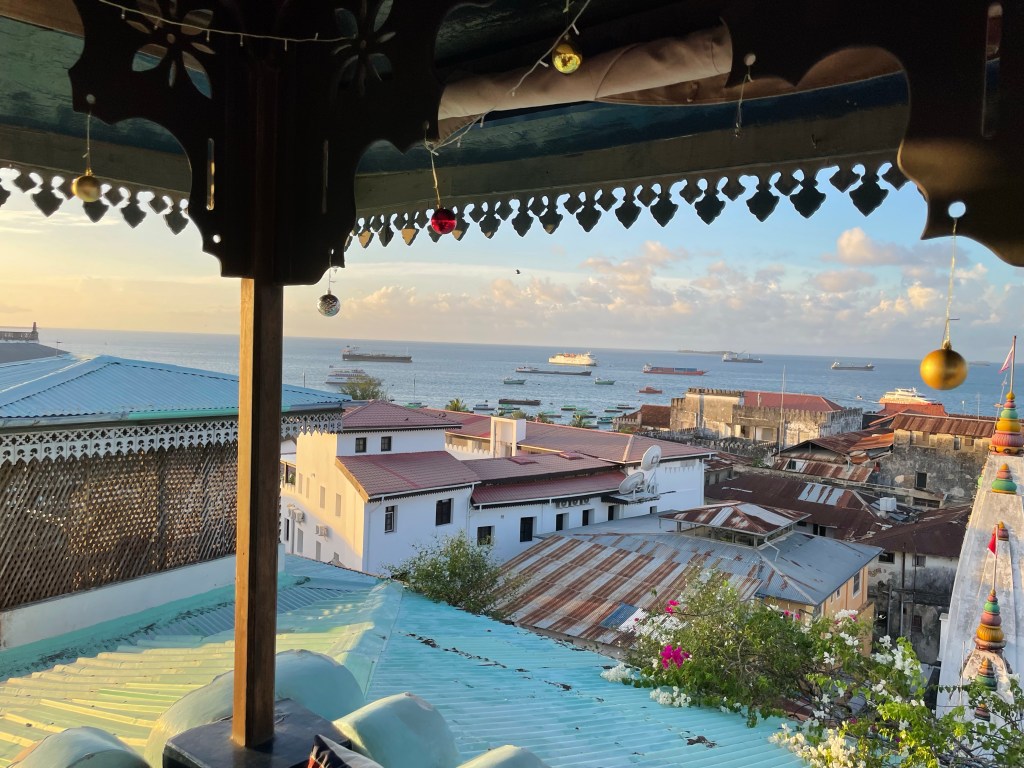 We capped off the day with pizzazz at the rooftop restaurant at our hotel. This is one of the most distinctive dining experiences on offer in Zanzibar, with a 360-degree view across the rooftops of the old town and down to the ships in the harbor. We were seated on cushions on the floor as waiters served tapas-style platters and a group of women musicians entertained us with traditional music and dance. Mother Nature also chipped in with a stunning sunset display.