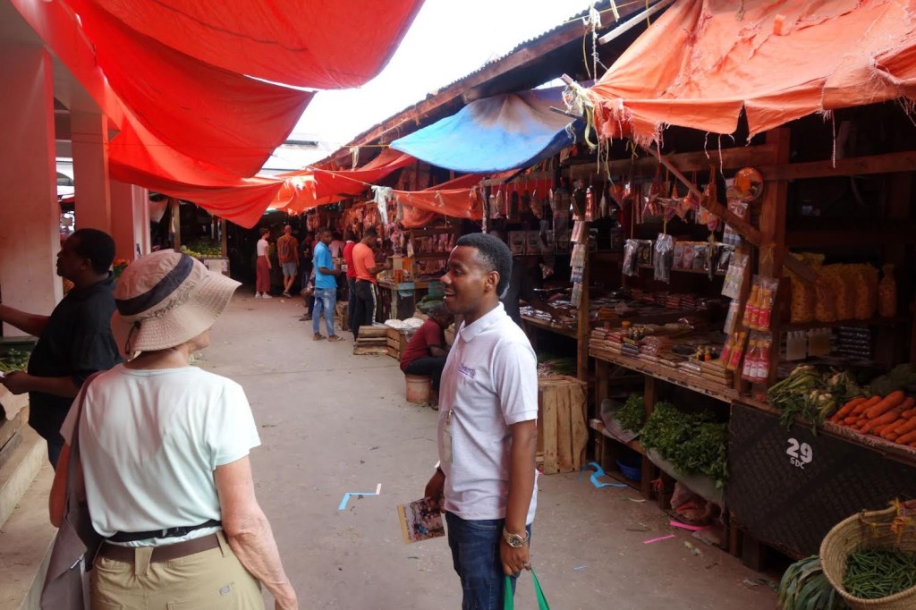 Meanwhile back in Stone Town, Nick and Lyn took a guided walking tour of the old city. Their guide took them through the markets, explaining many of the foods and customs. Along the way they saw the many ornate carved wooden doors for which Zanzibari homes are famous. Sadly, many historic examples are disappearing from their place of origin as wealthy foreigners buy them up for their own houses across the world.