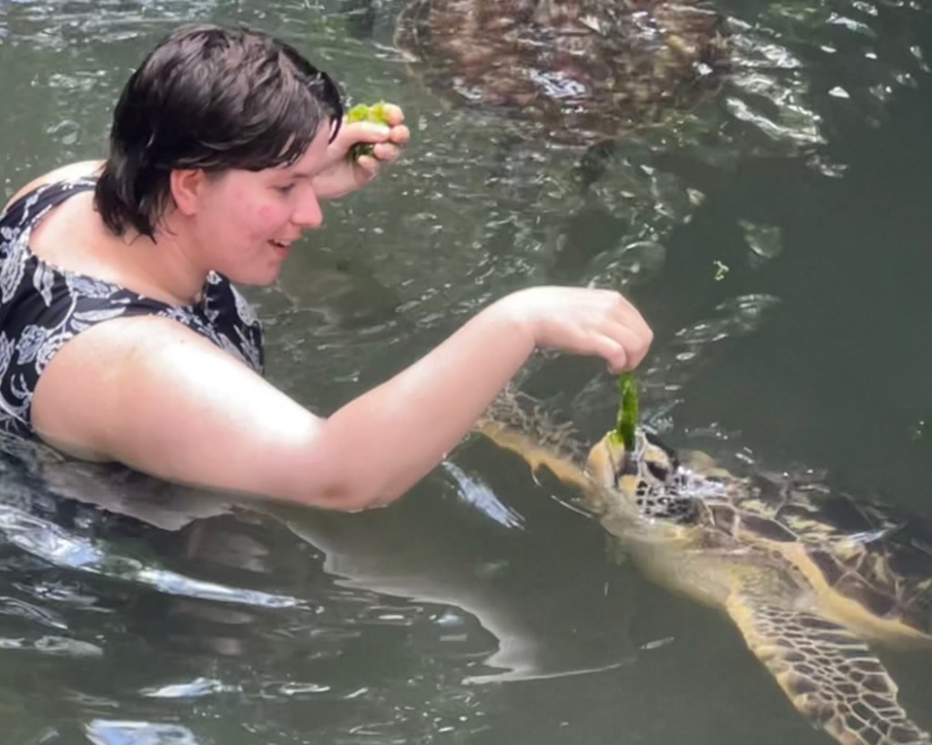 After a sampling of various tropical fruits (jackfruit was new to all of us), we parted ways, with some heading back to Stone Town while Rowan and Susannah continued north to Nungwi, at the very top of the main island. The destination was a natural marine aquarium that rehabilitates injured sea turtles. In order to support these activities, they have developed an ingenious business plan: have tourists pay for the opportunity to swim with the turtles. Rowan has rarely been so happy – the experience was worth every shilling of admission! Rowan and cousins swam with and fed the turtles for nearly an hour and a half, far outlasting all other visiting groups that afternoon.