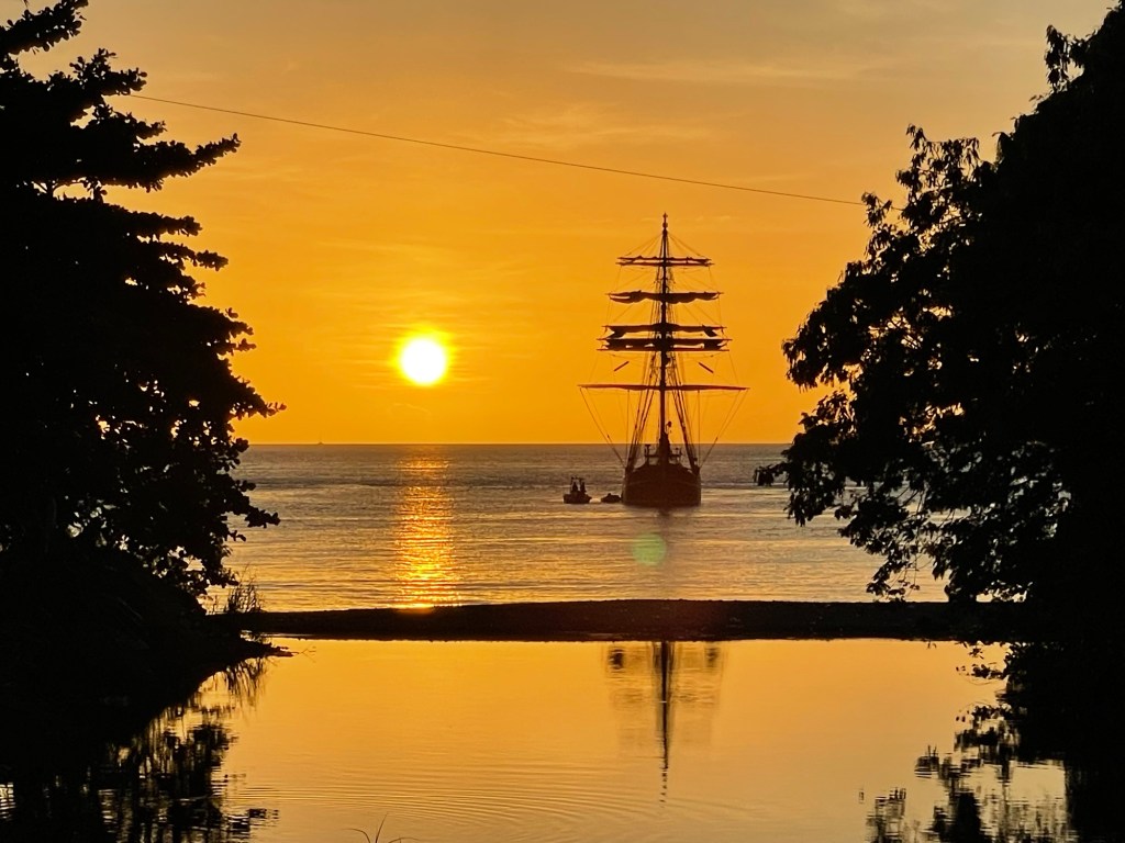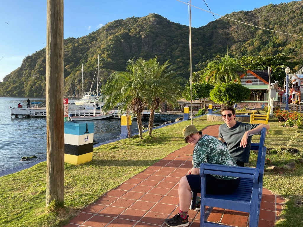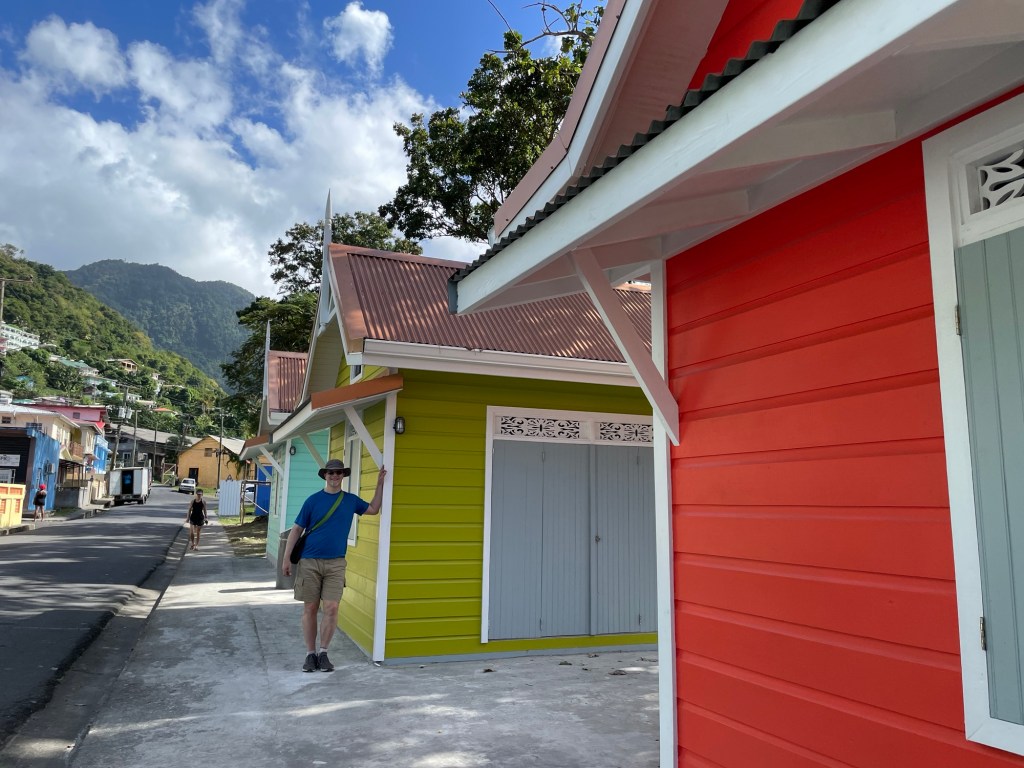 Walking into town this morning, we met a local entrepreneur named Marvin whose slogan is “Maximum Chill“. We borrowed a bit of that vibe today as we slowly took our bearings and got to know our surroundings. The morning was a stroll through the streets of Soufrière in search of the local supermarket. This turned out to be on the opposite side of town, which took us on a route past a number of cheerfully decorated vending stands not yet open for business.