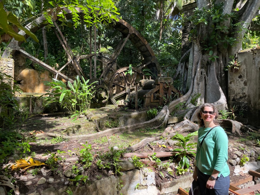 The old sugar mill has the robust feel of Victorian heavy industry yet now sits silently rusting in an overgrown jungle. The machinery used to crush and process the sugar cane is massive, with a 20-foot diameter water wheel that once powered the works. The water no longer flows through the feeder canal, the wooden mill race has rotted away, and a strangler fig is consuming what remains. Standing amidst the ruins felt like we had stepped into an Indiana Jones movie set.