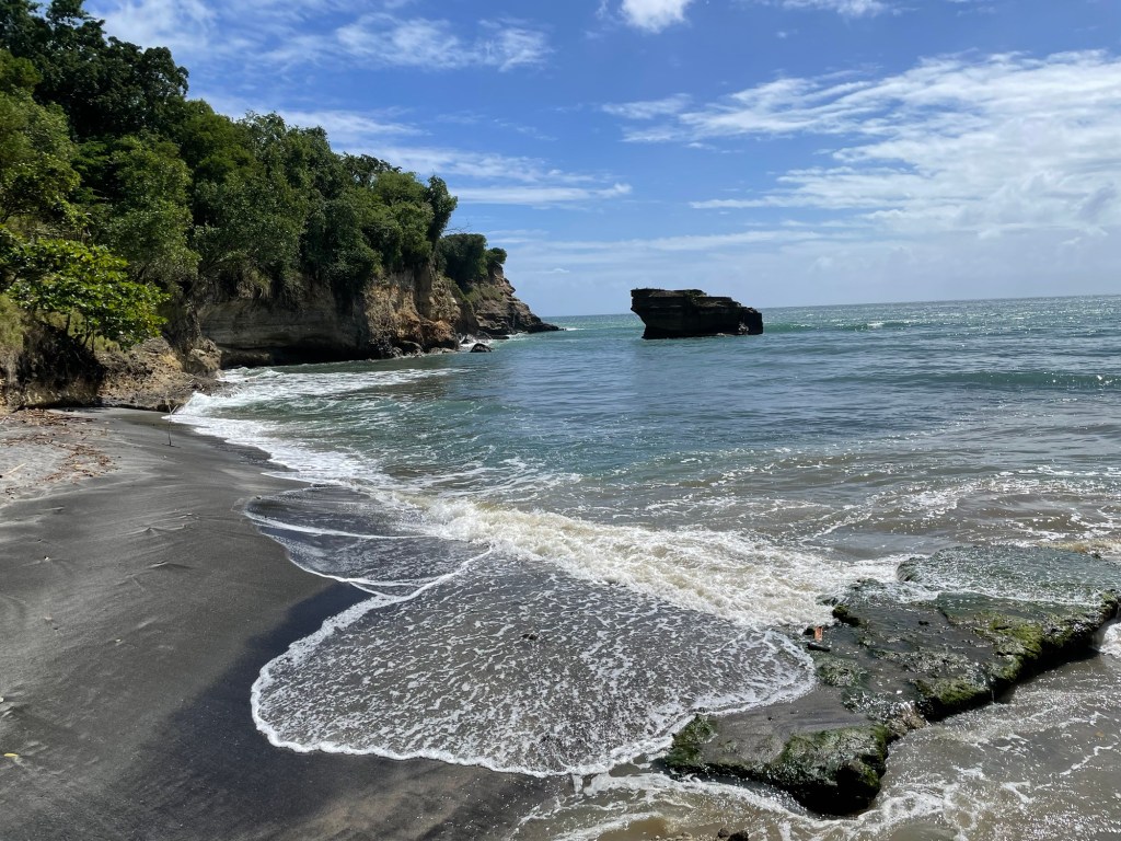Before heading back to Soufrière, we took a short detour to see the Anse des Sables beach on the Atlantic coast. The trade winds blow steadily onto the eastern shore, making for heavier surf and a fantastic location for kite surfing. We enjoyed watching a very skilled rider zipping back and forth and catching big air off some of the waves.