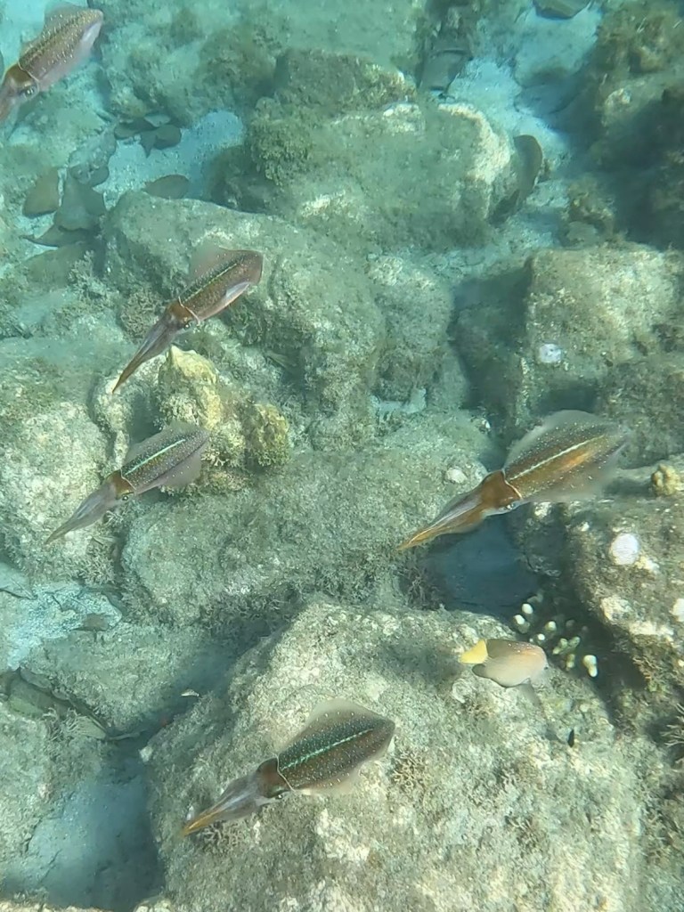 We saw many underwater creatures, including a school of cuttlefish and, thanks to Rowan’s sharp eye, an octopus hiding in a rocky crevice.