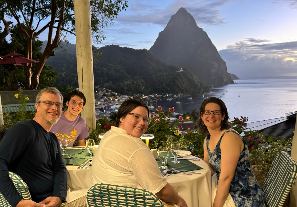 We wrapped up our day with a final sunset dinner at the Green Fig – we’re going to miss this view! Tomorrow morning, we bid a fond farewell to St Lucia.