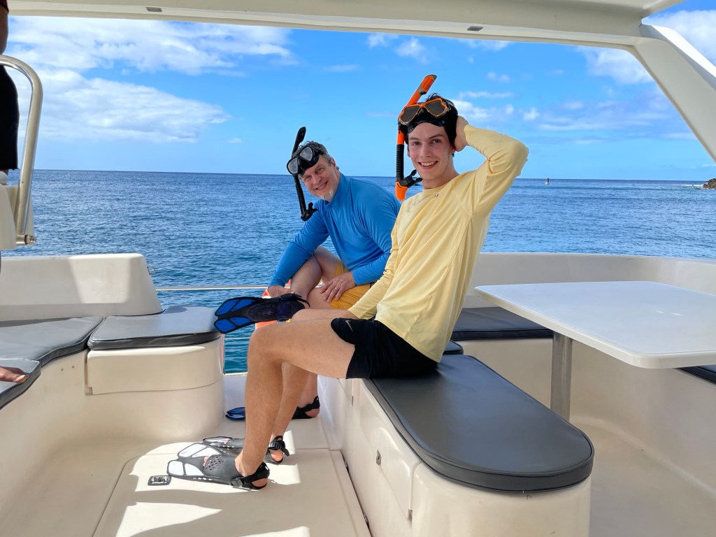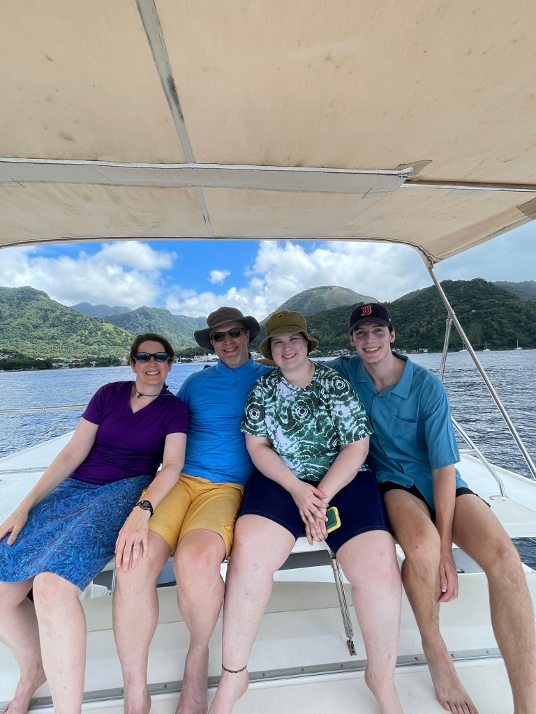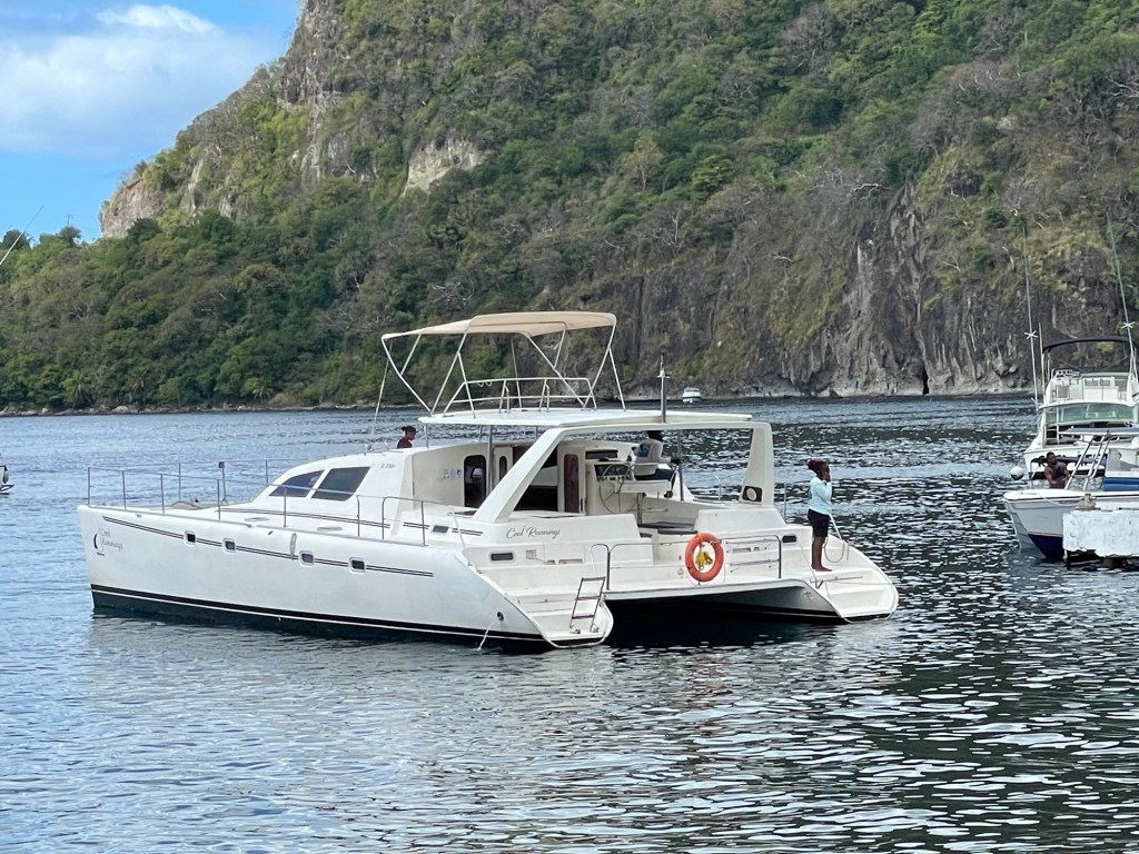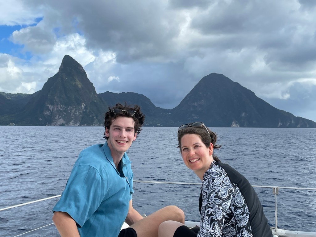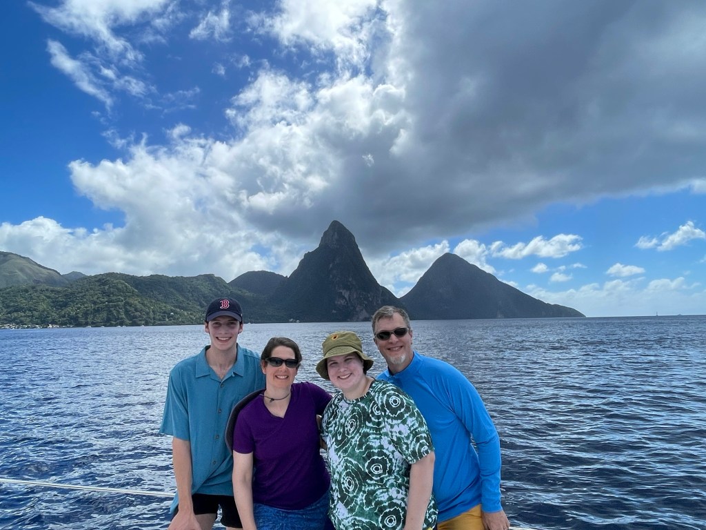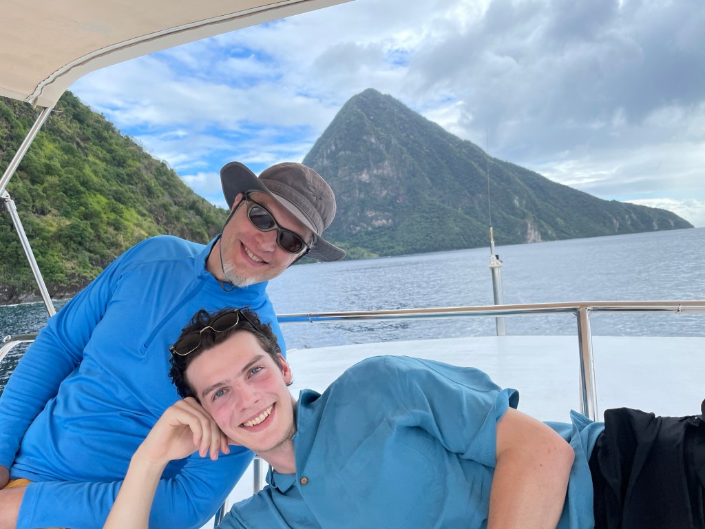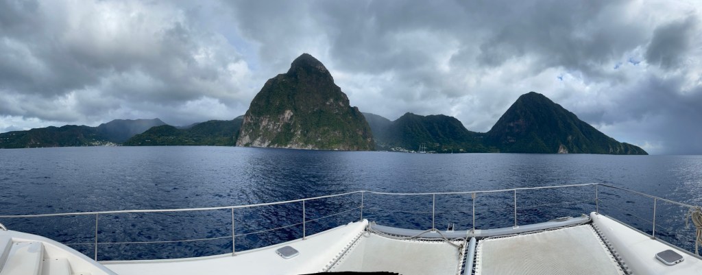 Arrr, mateys! Today our crew of scurvy dogs took to the sea – as a culmination of our vacation, we enjoyed a half-day boat trip (a literal 3-hour tour, though we didn’t get marooned on any desert islands). Thanks to Mystic Man Tours, we were set up on a luxurious catamaran called Cool Runnings with a very friendly crew. They kept us plied with glasses of their proprietary punch as we cruised smoothly along the coast. Note to self: the easiest way to get from point A to point B in St Lucia is almost always by water! In mere minutes, we covered a distance that would have required countless switchbacks and numerous ups and downs by land.