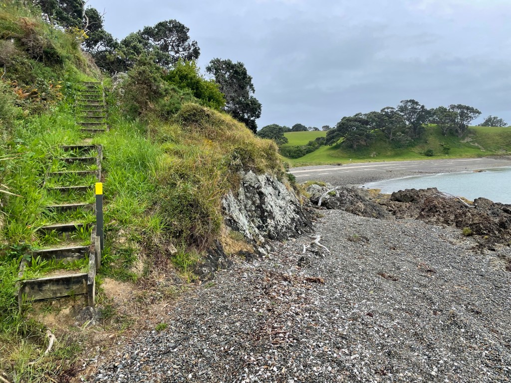 Sharing the cliffside with us were massive Pohutakawa trees, sometimes hanging out crazily into empty space with their gnarled limbs often spreading across the trail. These slow-growing giants can live for a thousand years or more, and do particularly well on coastal cliffs where other trees just can’t grow. They have another distinction: around November and December the grow silvery buds that mature into red blooms, so they are know as New Zealand’s Christmas trees.