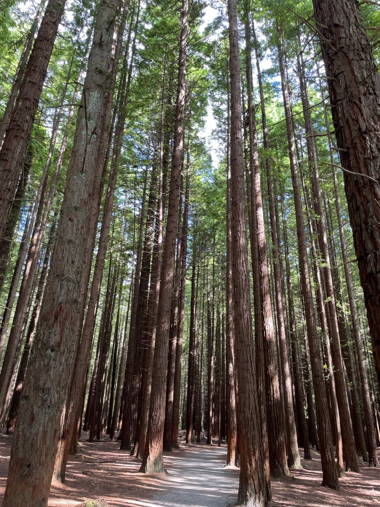 On the way home we made a stop to see the redwood grove, which we had wanted to see by daylight and it happened to be on our way home. A leisurely stroll through this peaceful forest of giants topped off the afternoon. The trail we followed on foot is actually just a tiny corner of a vast public trail network in the Whatarewarewa Forest, much of which is intended for mountain biking.