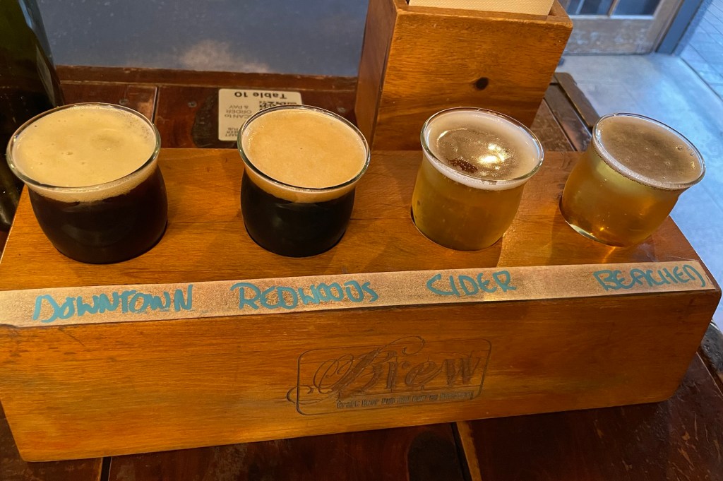 For dinner, we ended the day at an outdoor food arcade called Eat Streat, which is a dedicated pedestrian block lined with restaurants on both sides. A great place to get a flight of beer – and toad in the hole!!