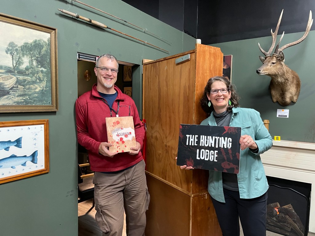 After checking in at our lodging, we were looking for an afternoon activity that wouldn’t get rained out. A brochure at the information center caught Susannah’s eye, and we booked time in an escape room. Called “The Hunting Lodge,” it was their hardest challenge puzzle, with three rooms, and centered on a gruesome murder. We managed to solve the main puzzle, but not the advanced level (to date, apparently nobody has).