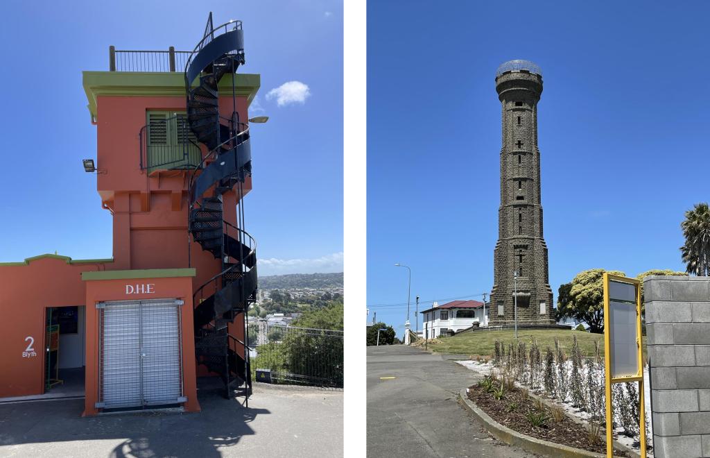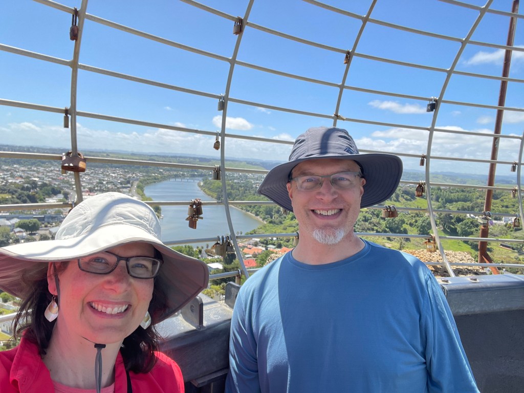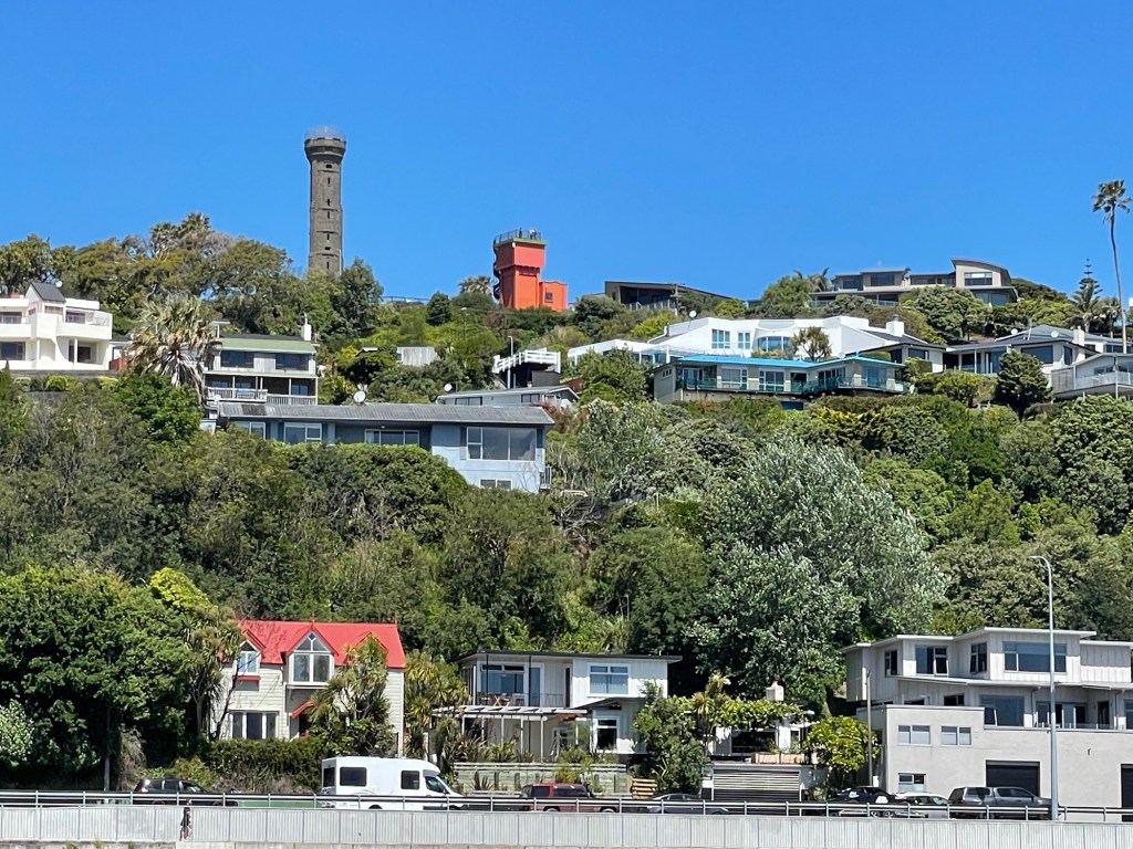 Not far from the elevator’s upper station is a stone tower built as a memorial to the 500-odd men from the area slain during World War I. We climbed the 176 steps to the observation platform at the top, which offers panoramic views of the city below. Apparently the “lover’s locks” fad has reached New Zealand, because the safety cage around the platform was studded with small padlocks.