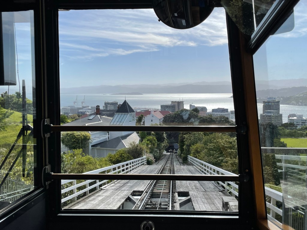 Susannah began the day with an early morning trip up the Wellington Cable Car to see the city from up high. The Cable Car is New Zealand’s only running funicular railway, providing service from the central business district to the suburb of Kelburn up the hill. At the top, there is a small but informative Cable Car Museum, including previous cable car models and even a Lego display of the current cable car route.