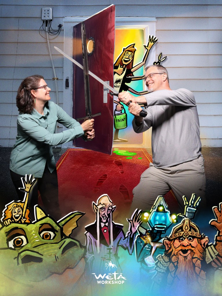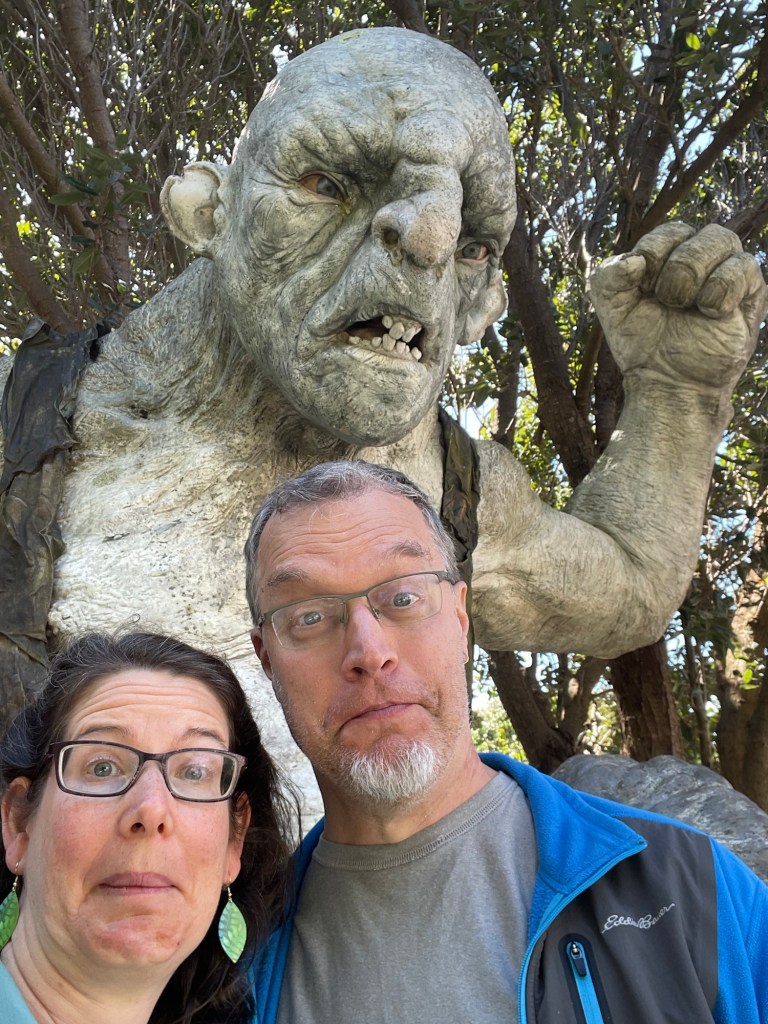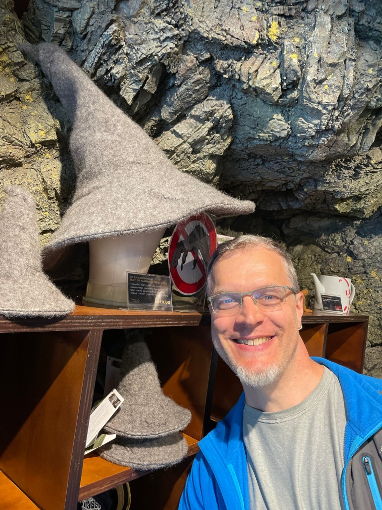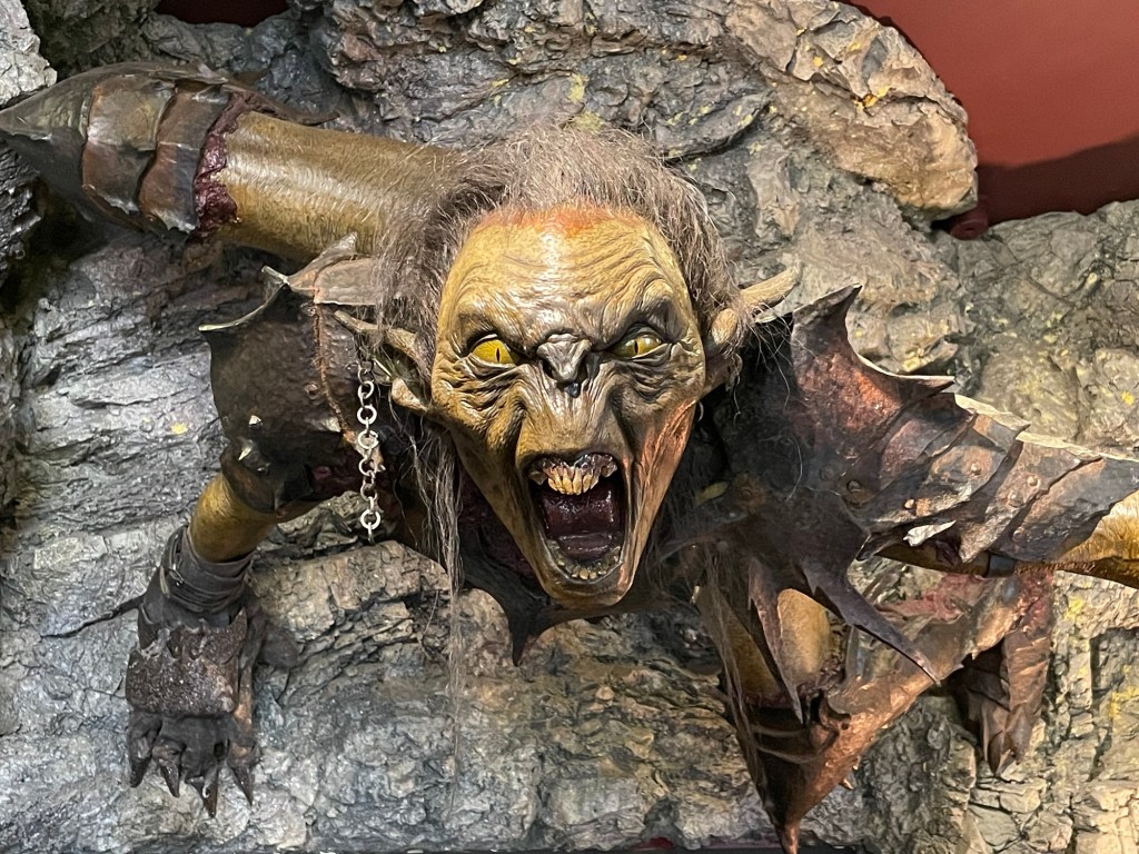 The Weta tour is entertaining and informative. They gave us a close-up look at a number of original movie props, including the Witch-King of Angmar (that’s the head Nazgul) in full regalia. Unfortunately they don’t allow any pictures in that section of the tour, so being law-abiding citizens we have nothing to show you from it. The pictures we do have are from the latter half of the tour where they were allowed, and from some of the displays in the gift shop and lobby area.
