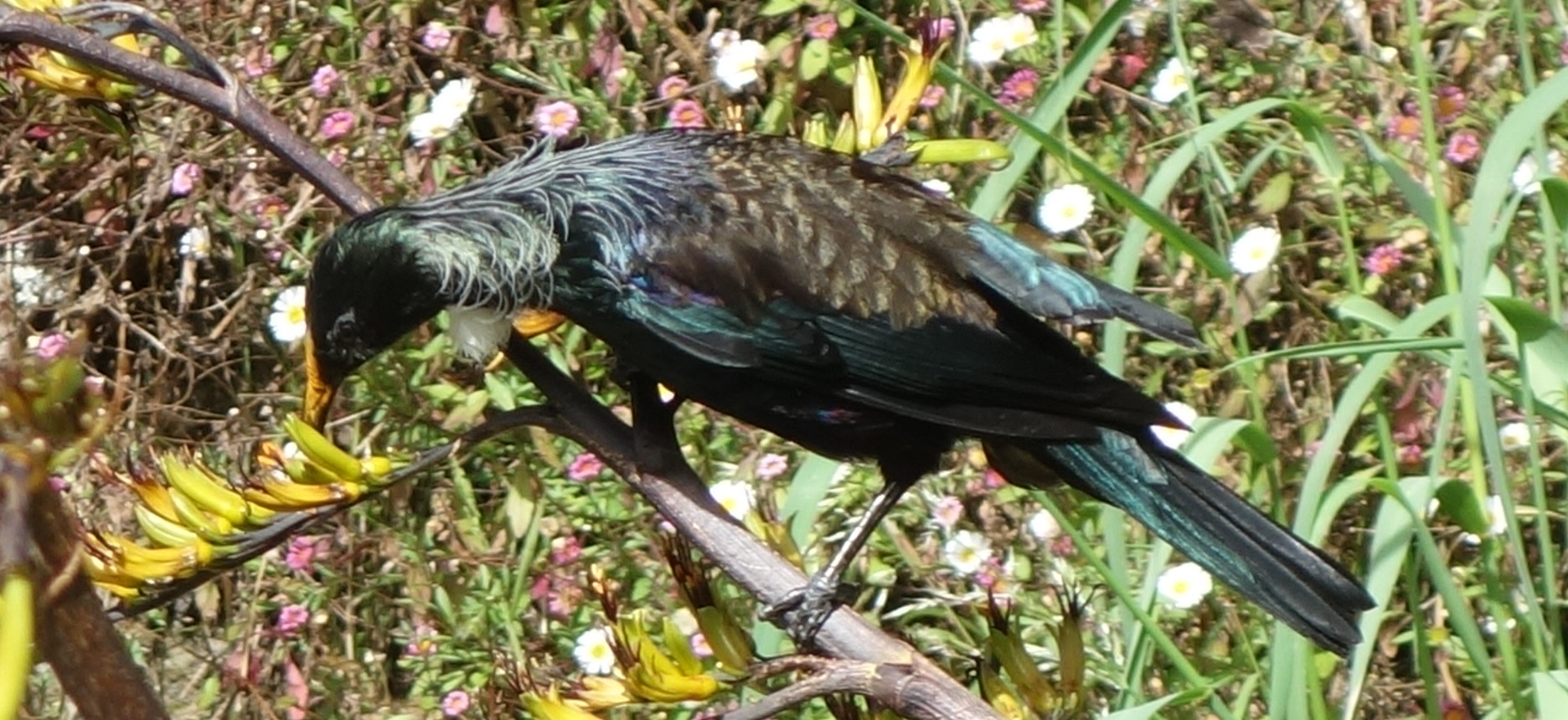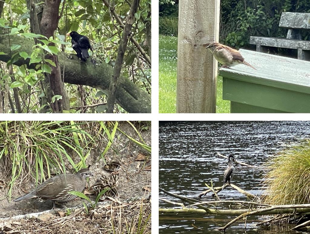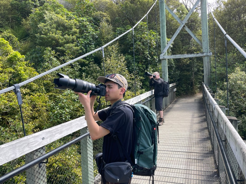 When we say “animals” we mostly mean birds. There were only two species of mammals in New Zealand prior to its discovery by Europeans; both are bats. There are some lizards, and insects of course, but birds had diversified to fill most of the ecological niches available on the island. Although the largest (the moa) are now gone, along with many others, quite a few species still remain. The air of the sanctuary was filled with birdcalls at all times, and nature photographers with scary-big camera lenses stalk the trails. We are far from professional, but still managed to bag a few photos ourselves.