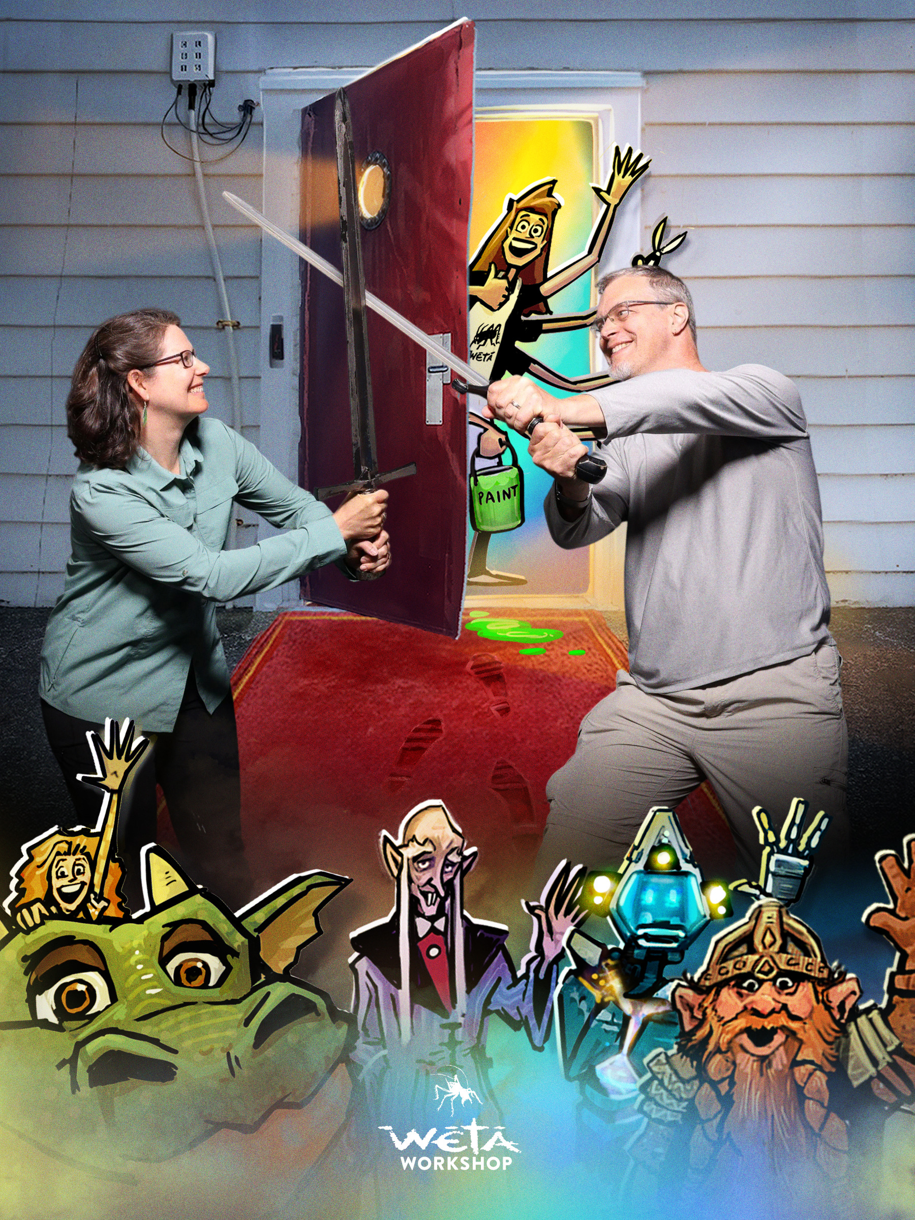 As a good-bye gift they took our picture with a fancy camera rig and some borrowed movie props, and dropped us into one of several predesigned backgrounds.