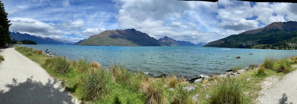 Coming in for a landing at Queenstown, we could sense a difference in the landscape — while the New Zealand we have seen so far is rugged and gorgeous, what we have seen so far of the south is built on a different scale. Huge mountains and rambling blue lakes that seem to go on and on. Wow!